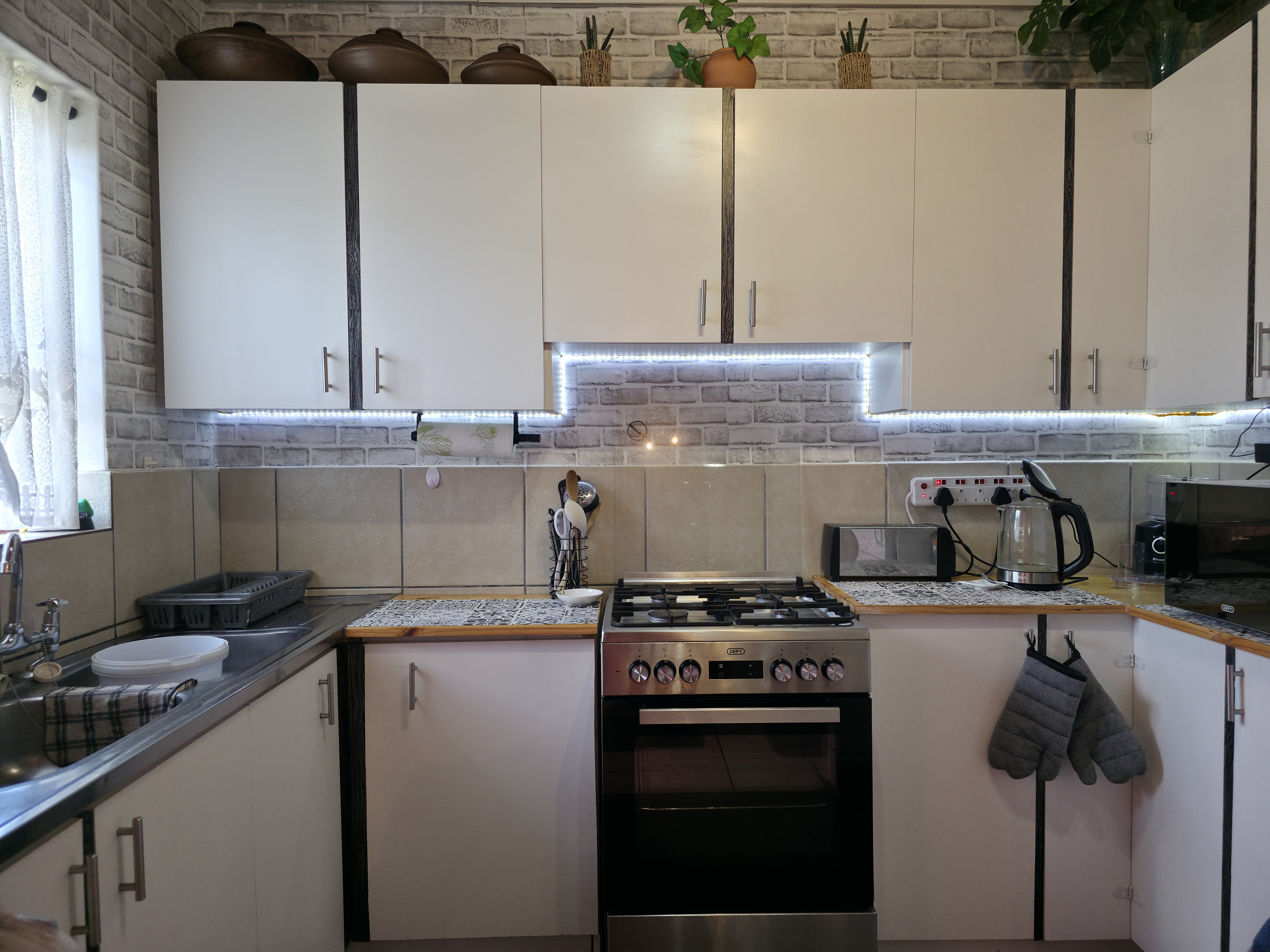 Upon entering, you are greeted by a spacious open-plan living area that blends the TV lounge, dining space, and kitchen into one harmonious flow, creating an inviting setting perfect for both everyday living and effortless entertaining.