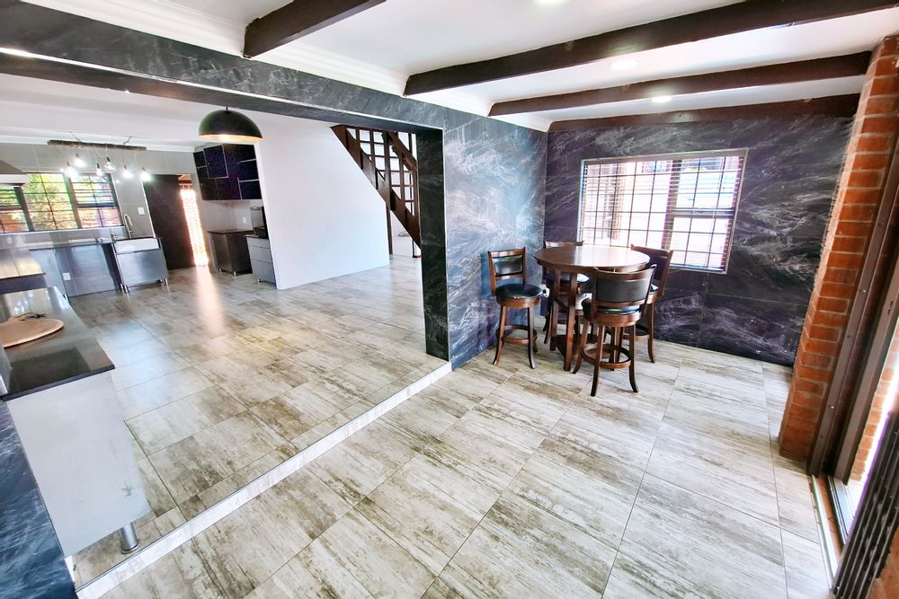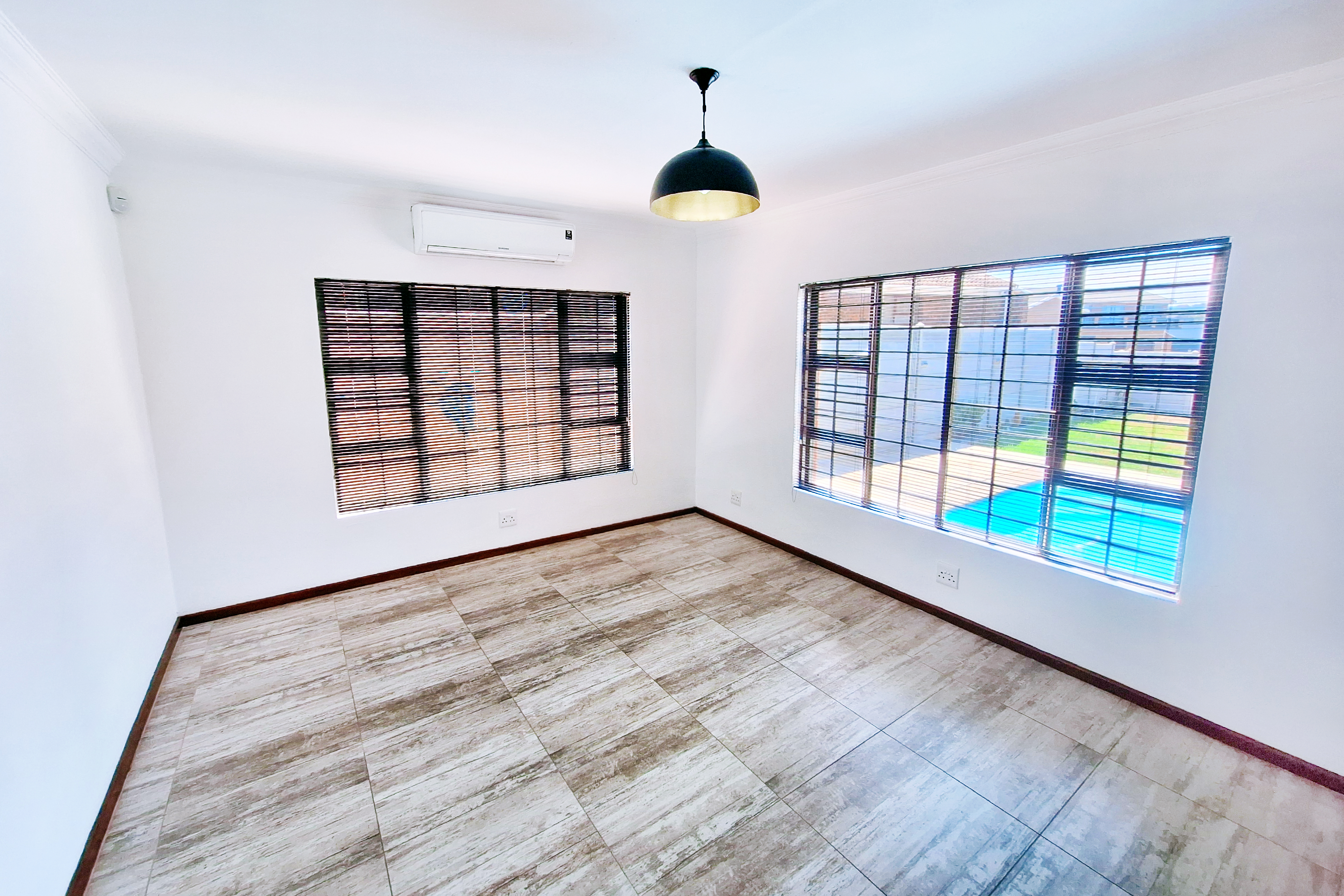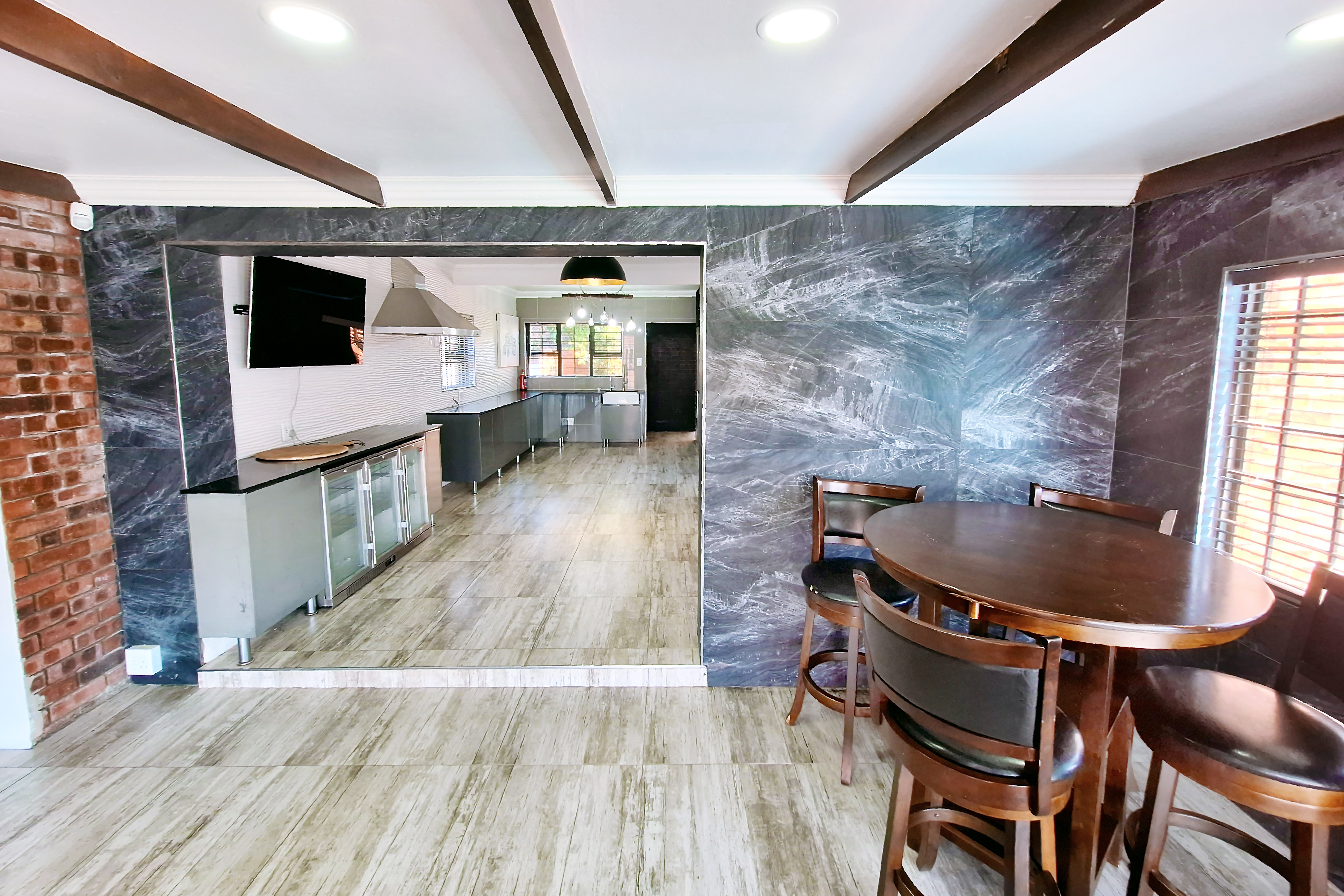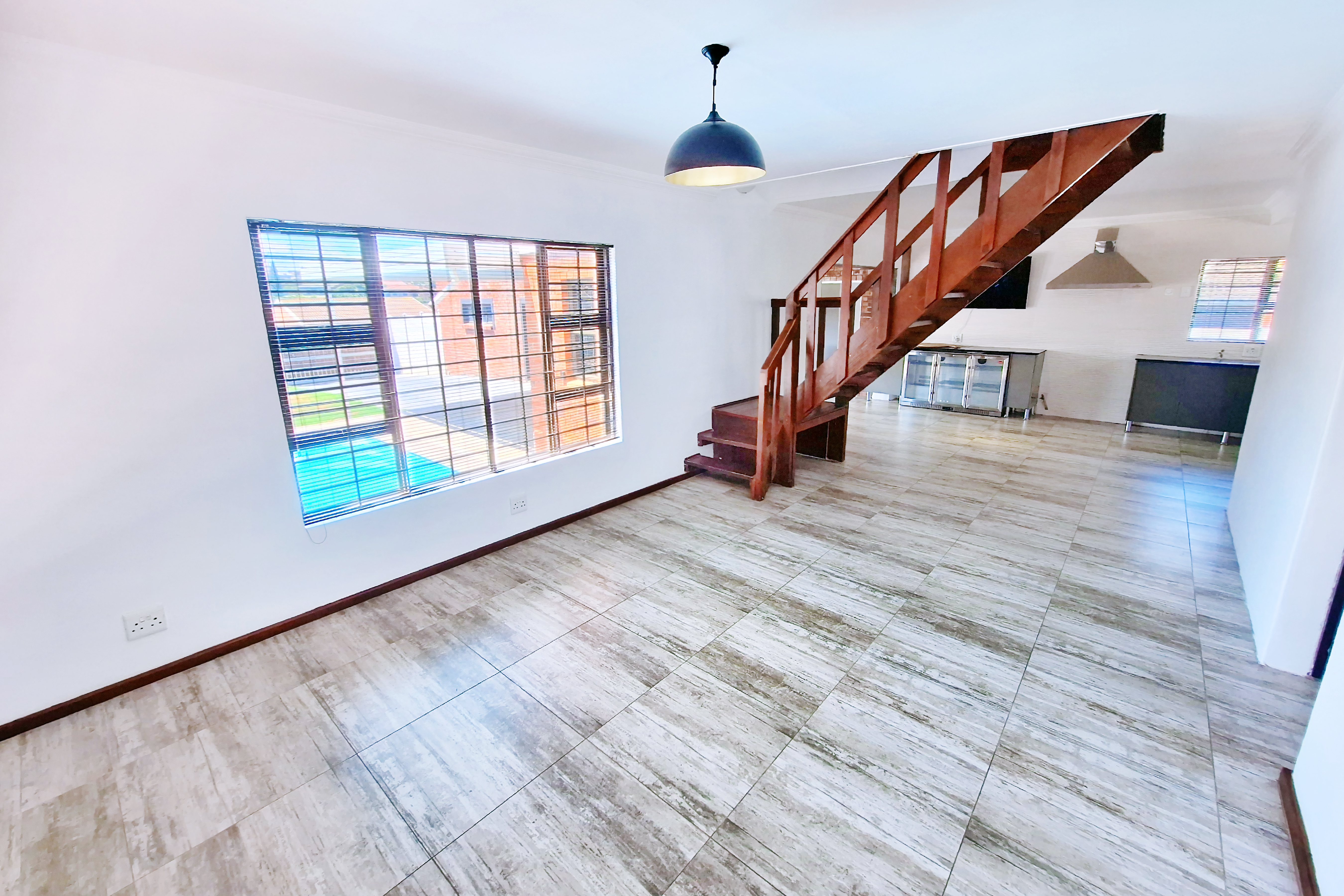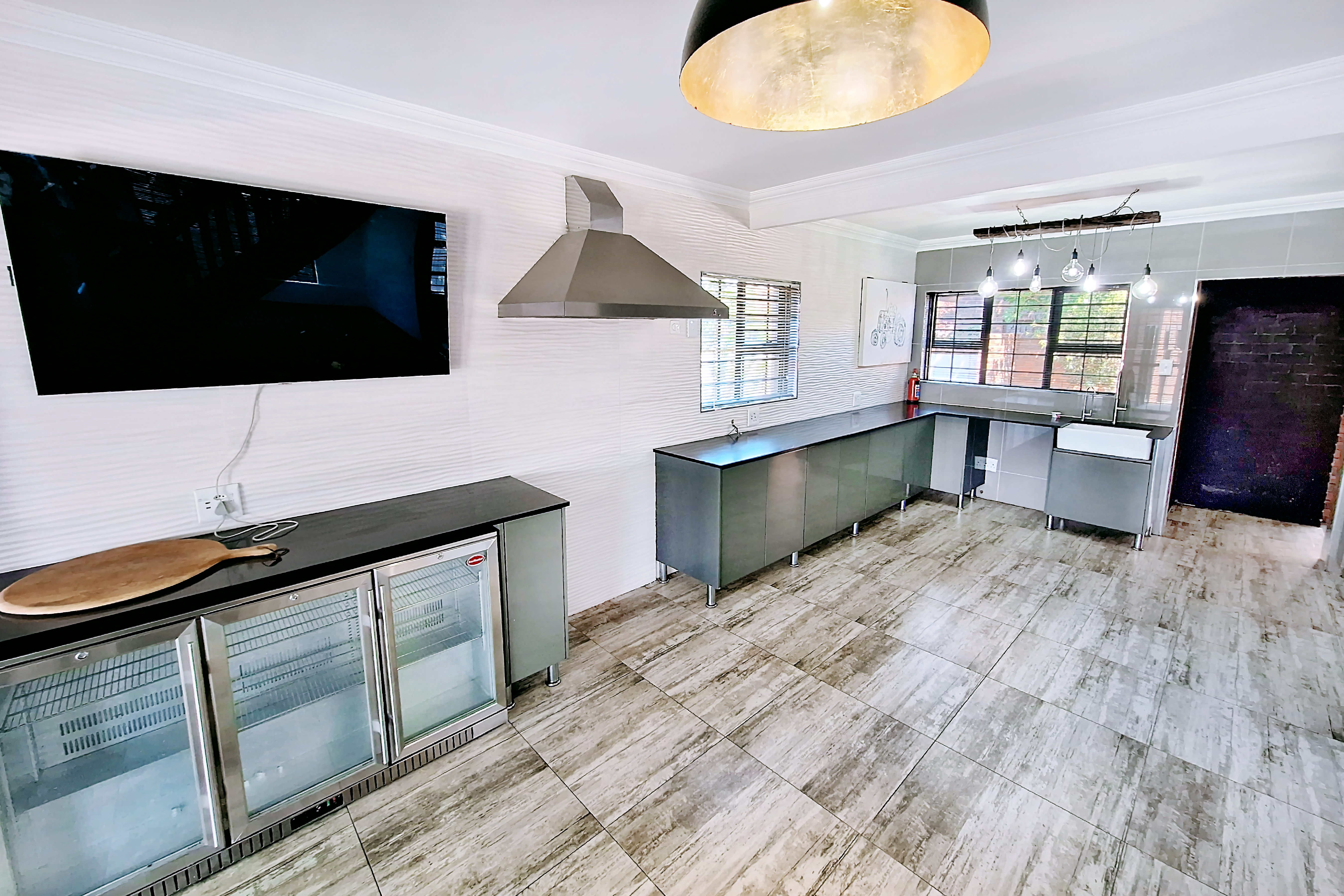 The home welcomes you into an airy layout where the kitchen, dining, and main living areas integrate seamlessly, encouraging effortless interaction between spaces. A dedicated entertainment room fitted with a built-in braai extends the living experience, making gatherings easy throughout the year.