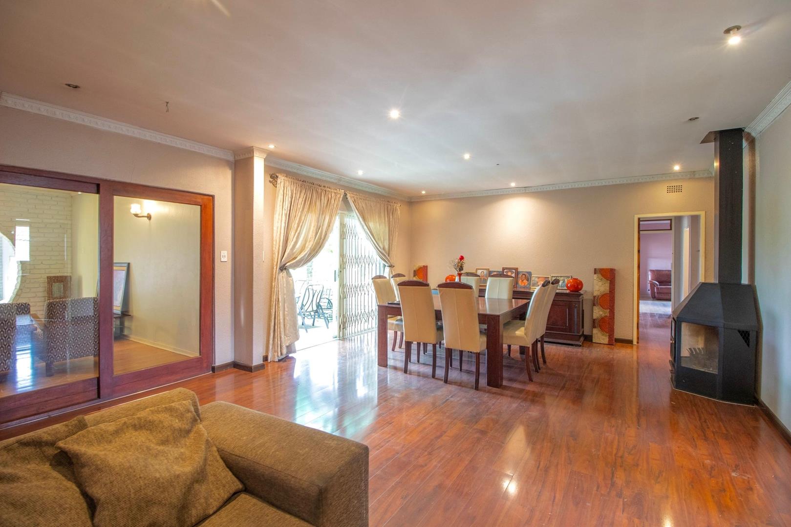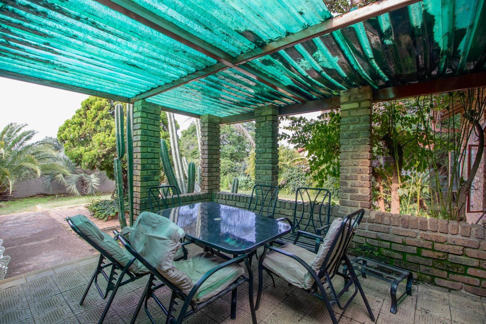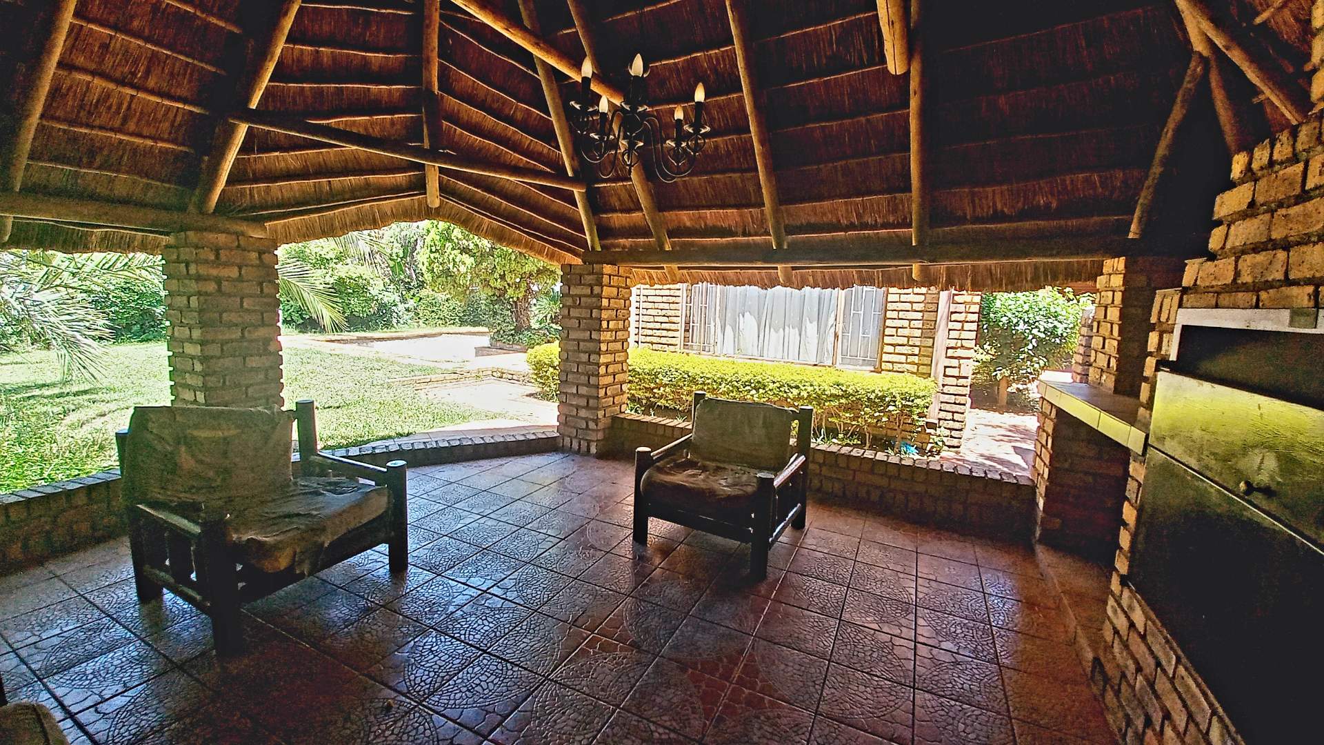 The exterior of the property is designed for relaxation and entertainment. Enjoy leisurely afternoons by the swimming pool or host memorable gatherings on the patio and under the lapa, complete with a built-in braai area. The beautifully maintained garden provides a picturesque backdrop for outdoor activities.