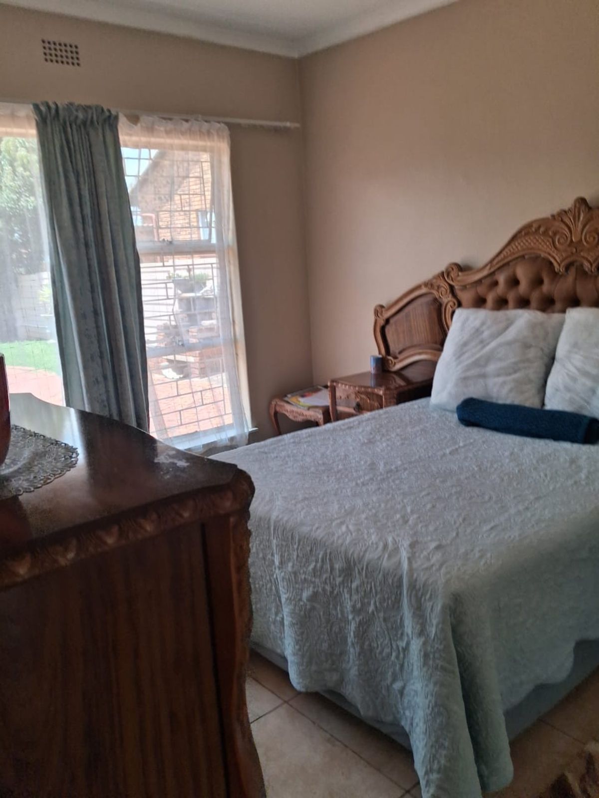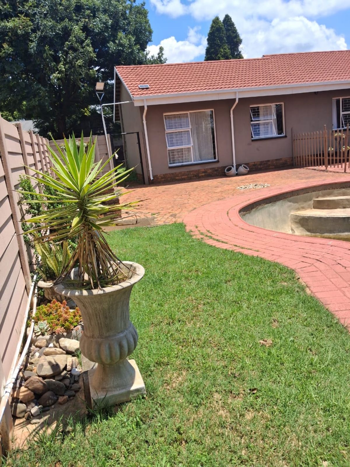 This four-bedroom house in Norkem Park offers comfortable family living with two bathrooms, including a main en-suite. The home features an open-plan sitting and dining area, a fitted kitchen, a rest room, and a store room, creating a practical and functional layout. An outside toilet adds further convenience, while the garden and swimming pool enhance the outdoor living experience. An automated gate provides secure access to the property.