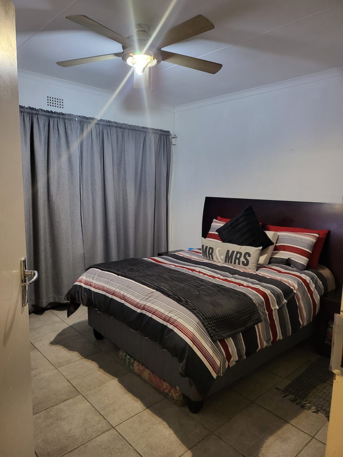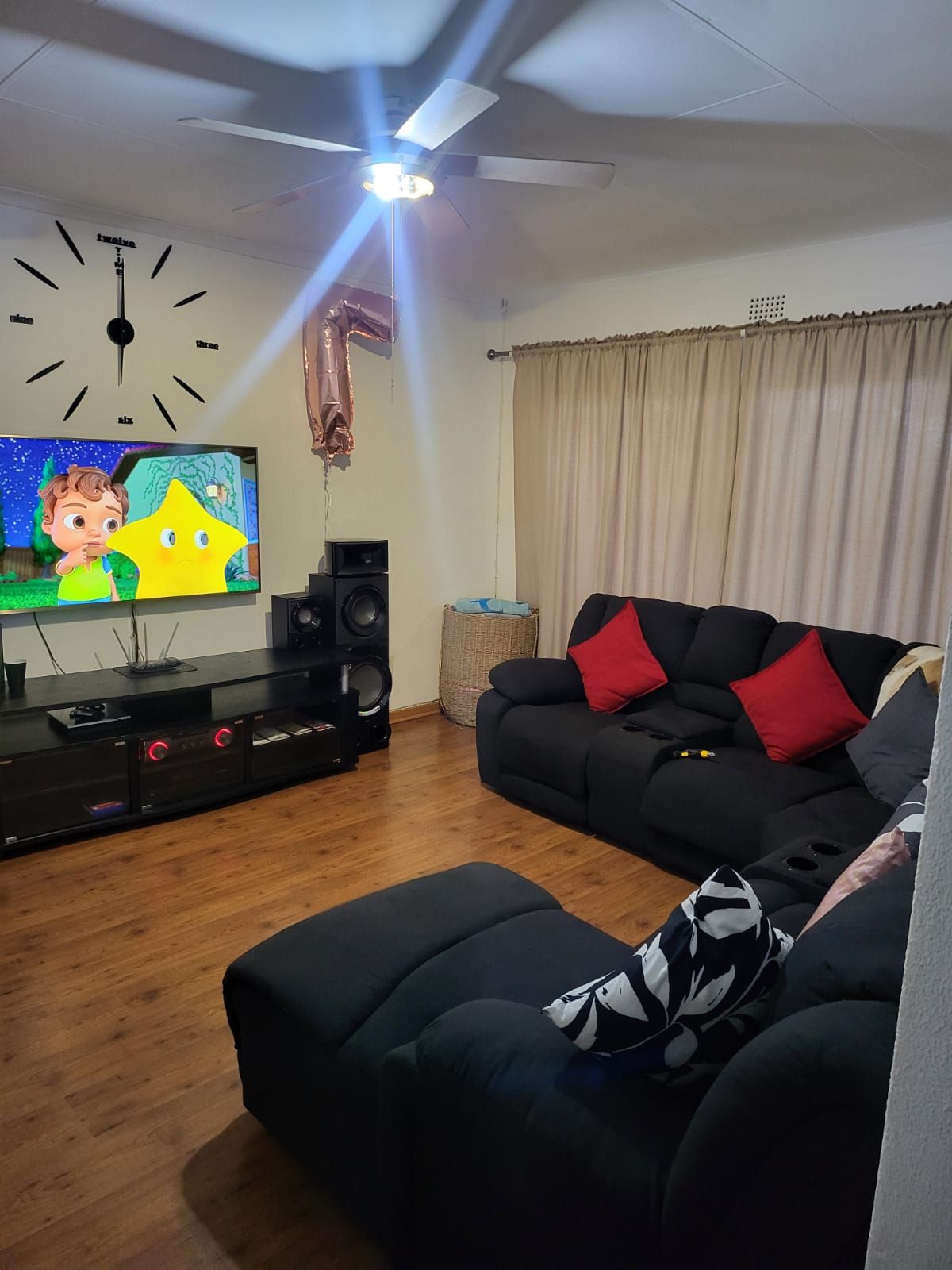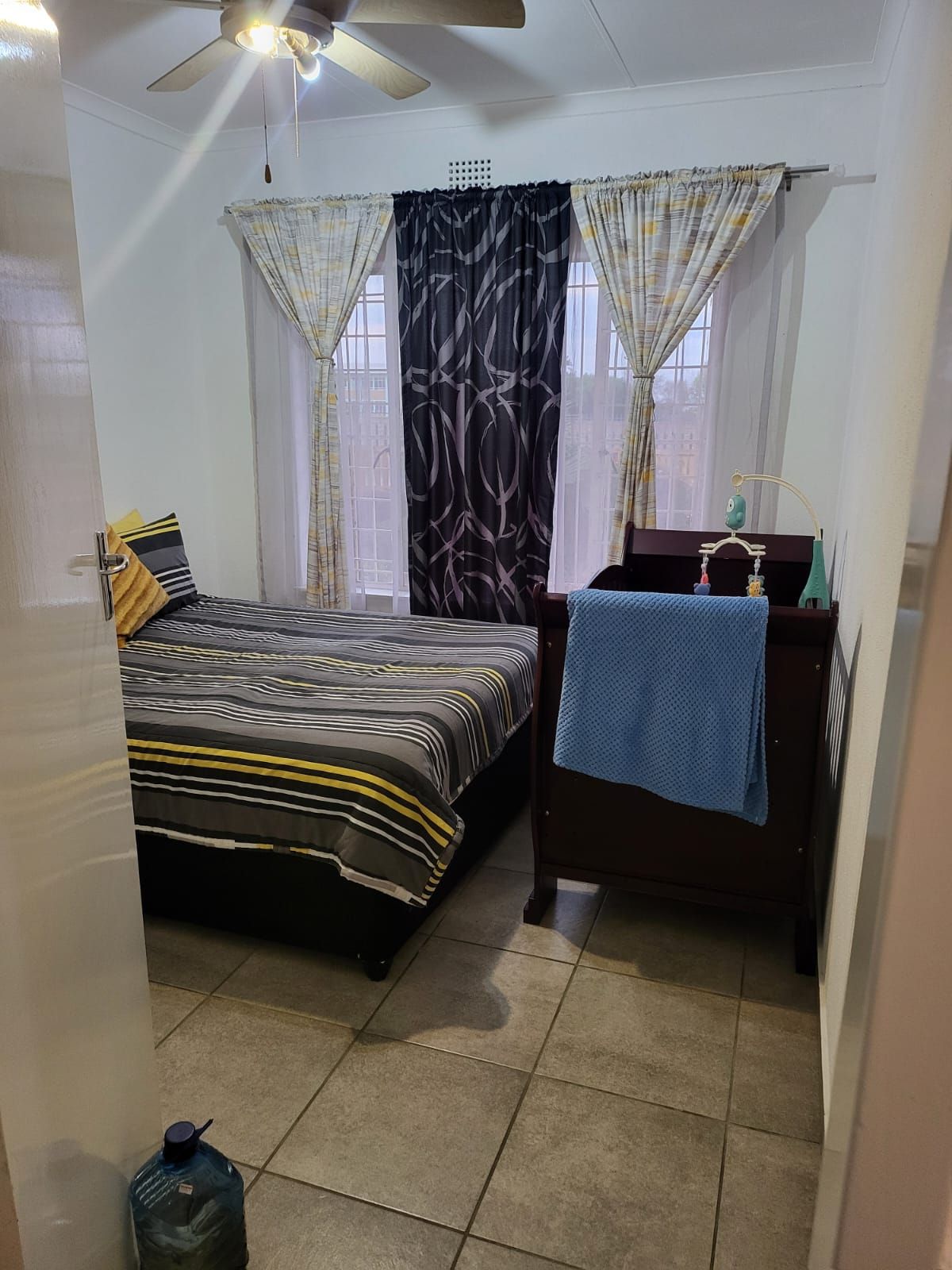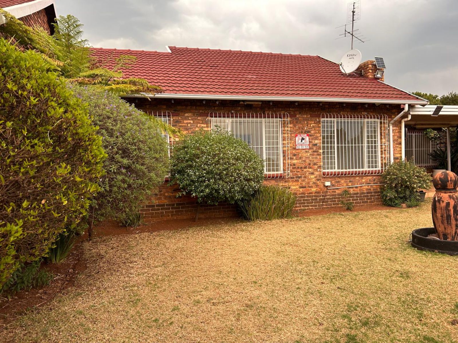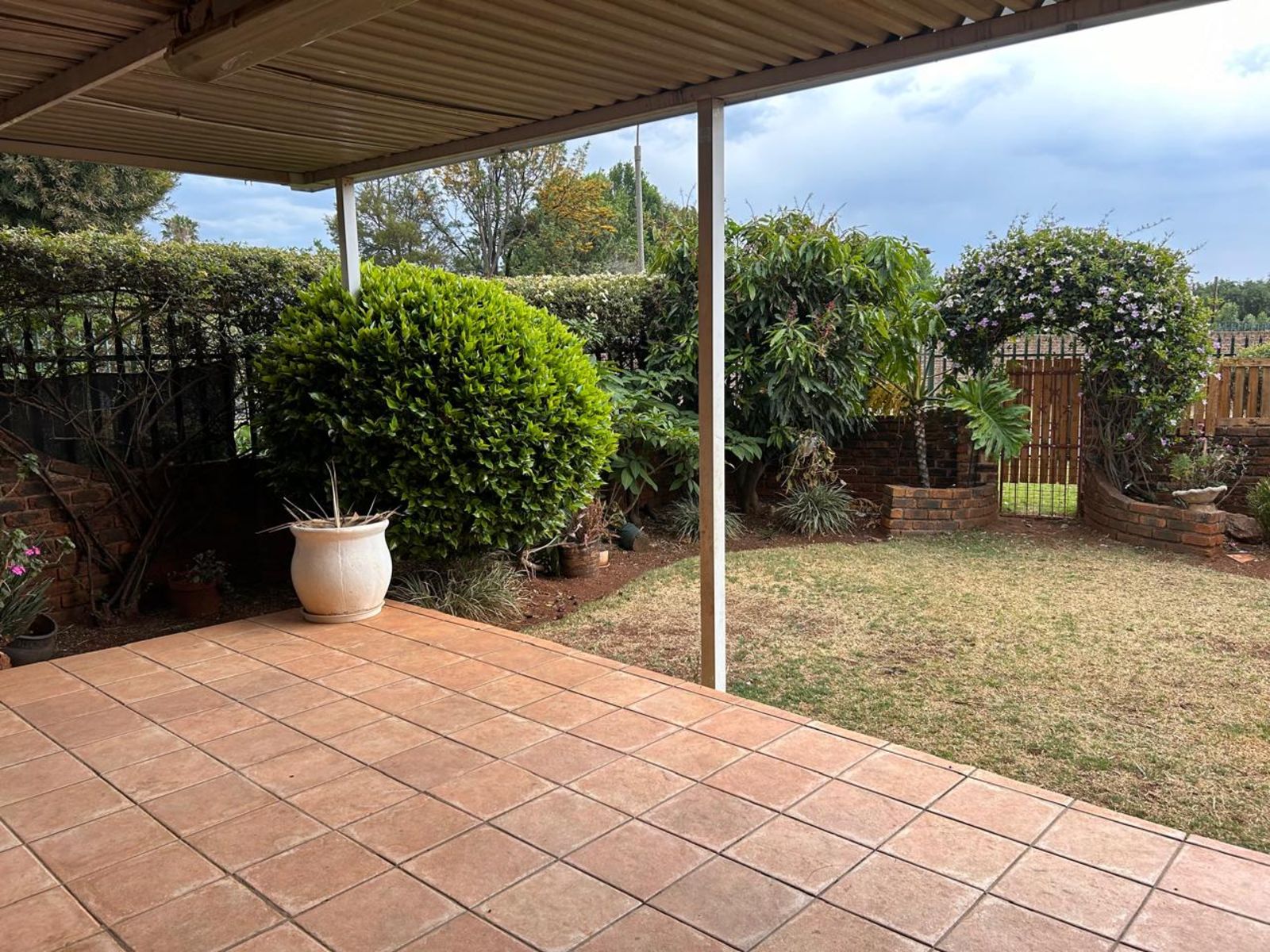This house offers a spacious lounge, seperate dining space and an extra room for children's tv area to create a perfect setting for entertaining or relaxing. Step outside to enjoy your own private garden – a serene oasis ideal for outdoor gatherings or quiet reflection with a braai area and partio to entertain guests. There are 2 lock up garages with modern wooden doors to provide security for your vehicles and an alarm system around the house.