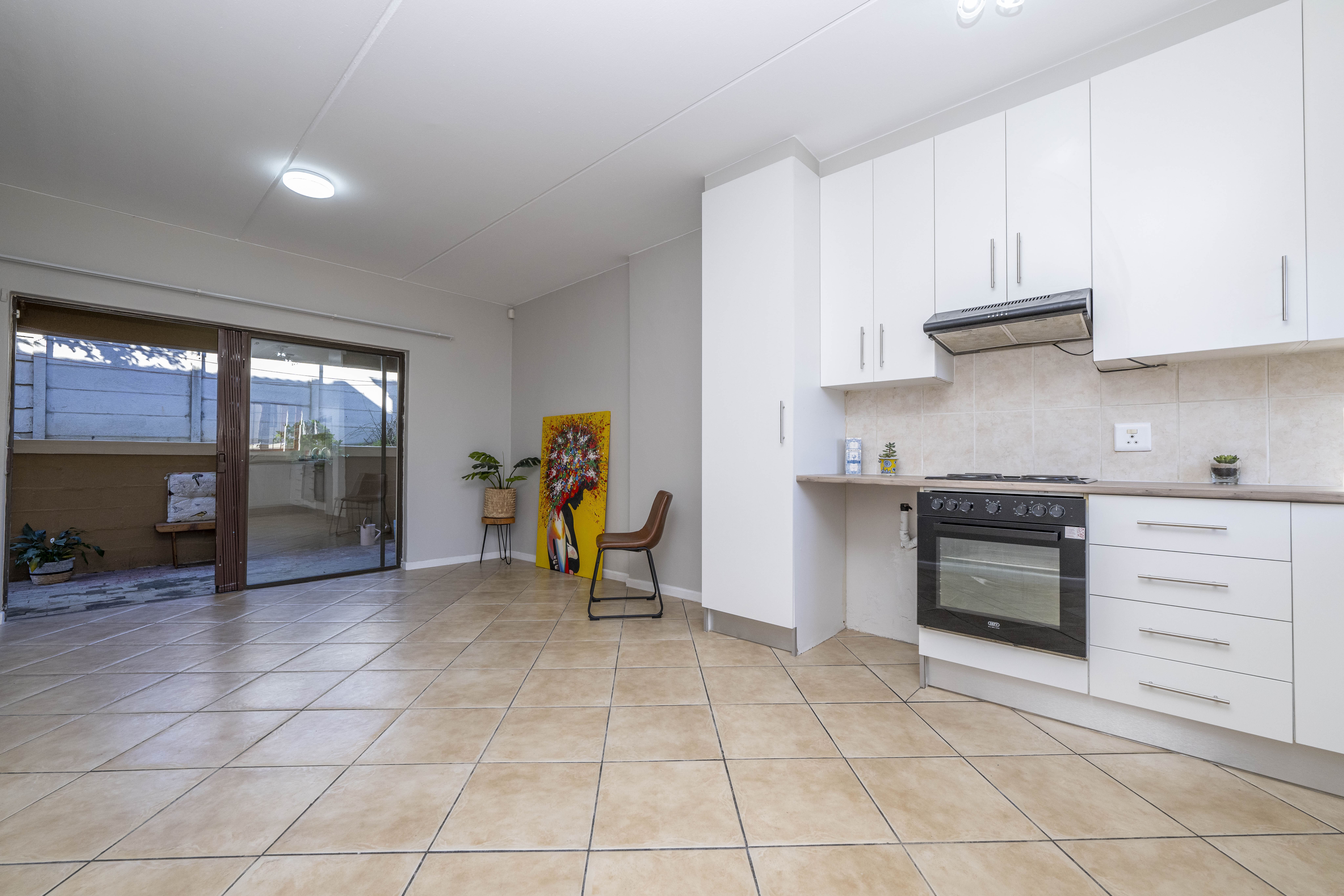 Step inside and you’ll love the modern open-plan layout, where the kitchen, lounge, and dining areas flow effortlessly together. Sliding doors open onto a covered patio — perfect for relaxed mornings, weekend braais, or winding down after a long day.