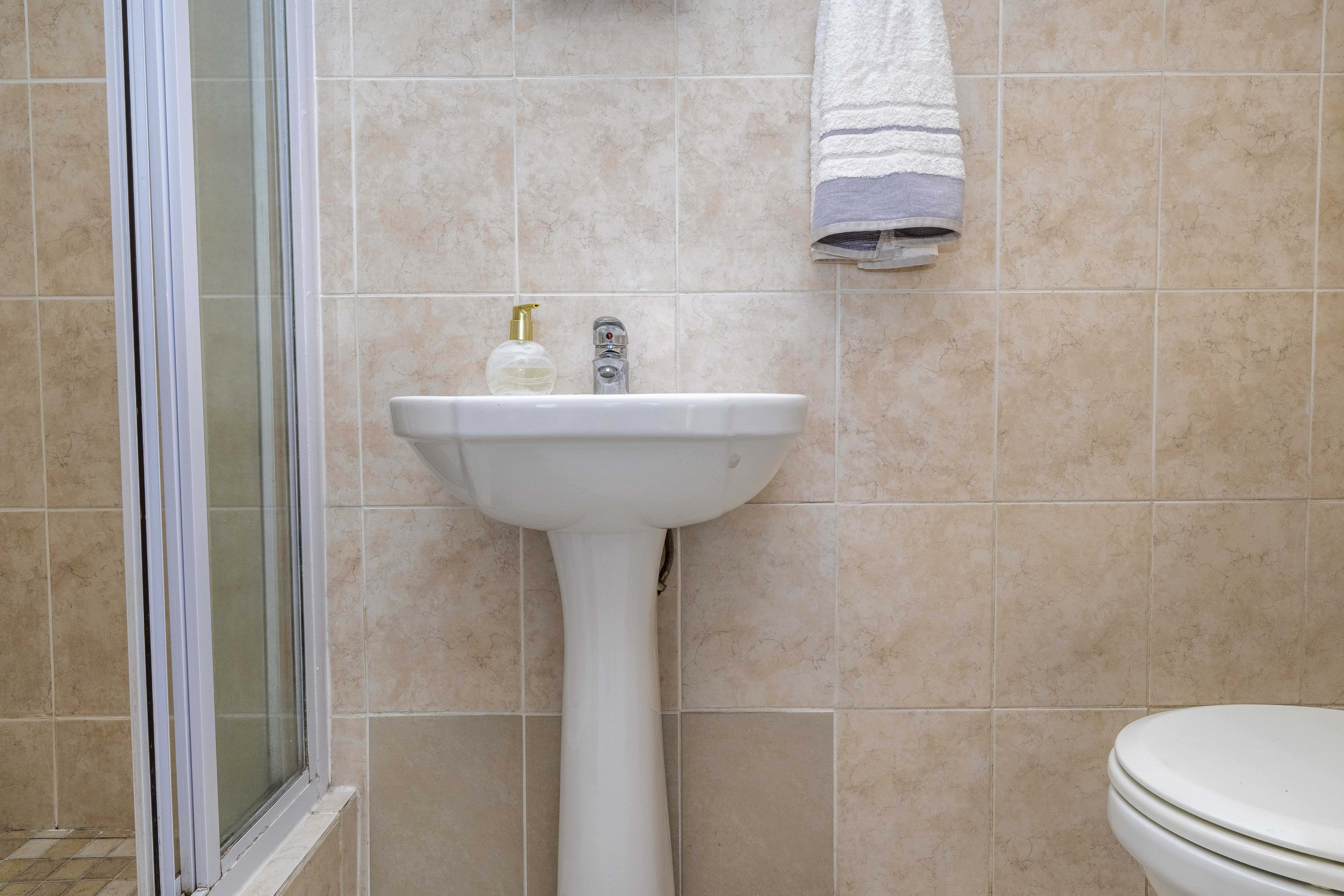 Upstairs, you’ll find two sunny and spacious double bedrooms, both with plenty of built-in cupboards to keep everything neat and organized. The main bedroom has its own en-suite bathroom with a shower, toilet, and basin, while the second bathroom offers a comfy bath, toilet, and basin — ideal for family or guests.