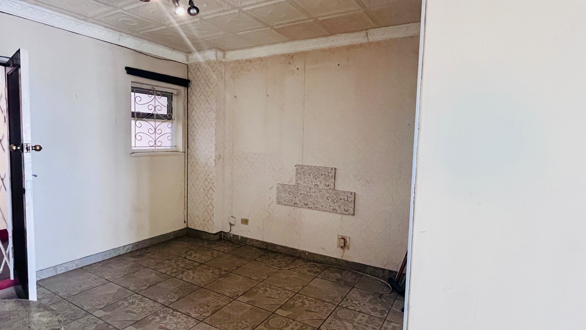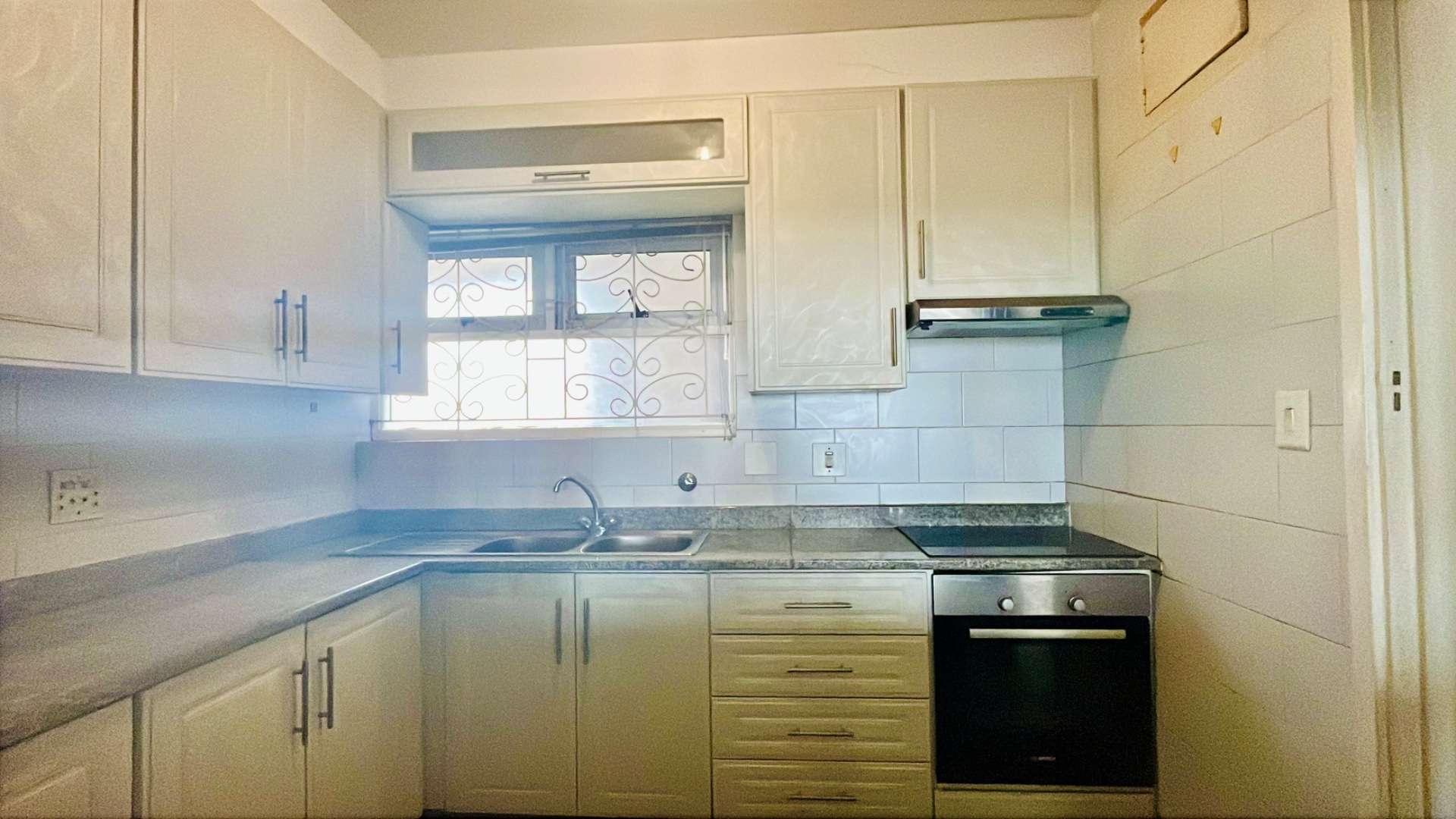 The kitchen is fitted with granite countertops, a hob, oven and extractor fan. The bedroom includes built-in cupboards, and the bathroom has a functional shower that could shine beautifully with a touch of extra care.