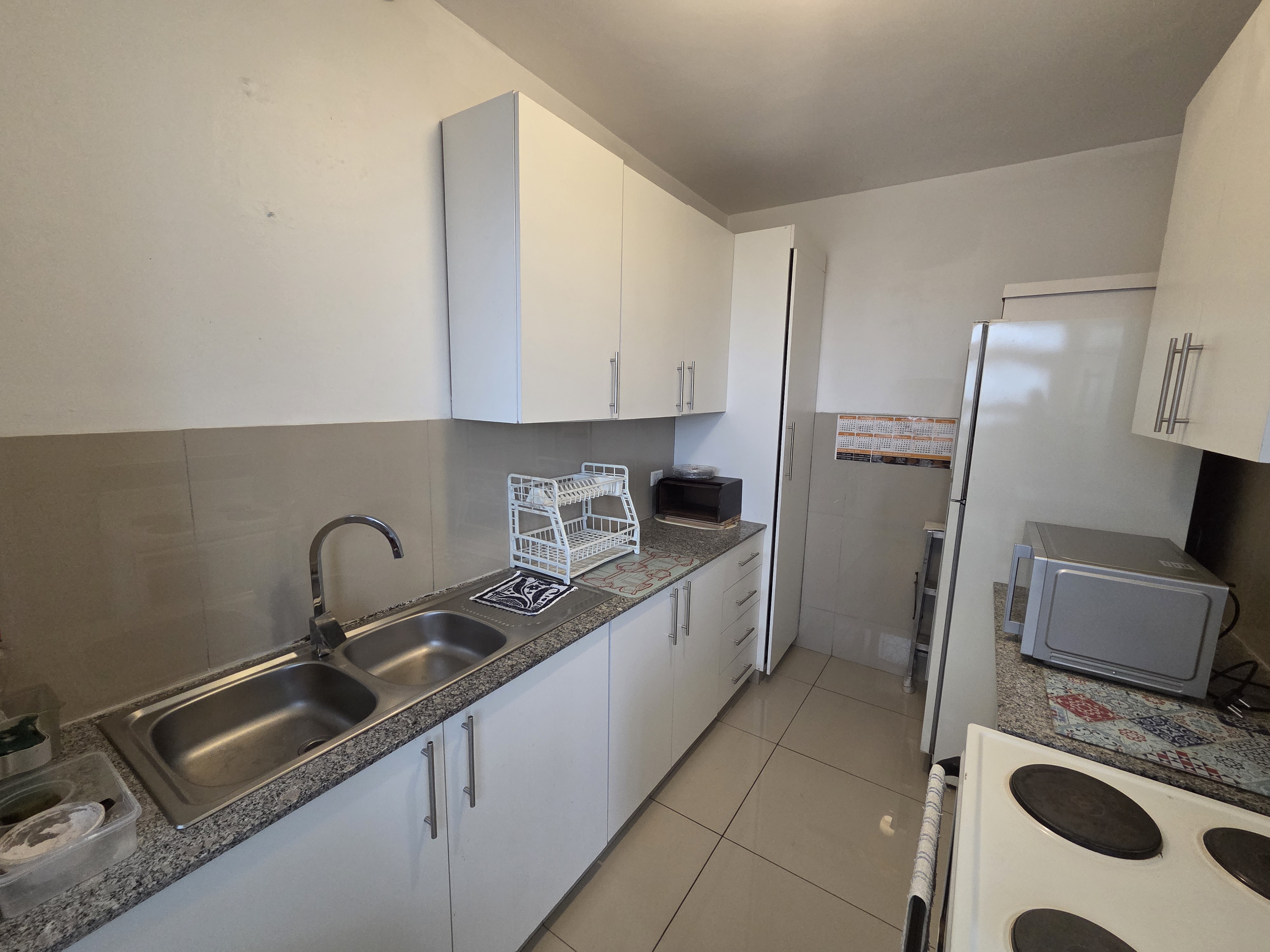 The unit boasts a pristine fully tiled finish creating a bright and modern ambiance. The home features a modern kitchen perfect for entertaining and is complete with lovely built in cupboards that provide both style and generous storage. Security and convenience are paramount. The complex ensures your safety with 24 hours access control, and the unit includes the highly desirable feature of one secure parking bay. The levy includes water usage.