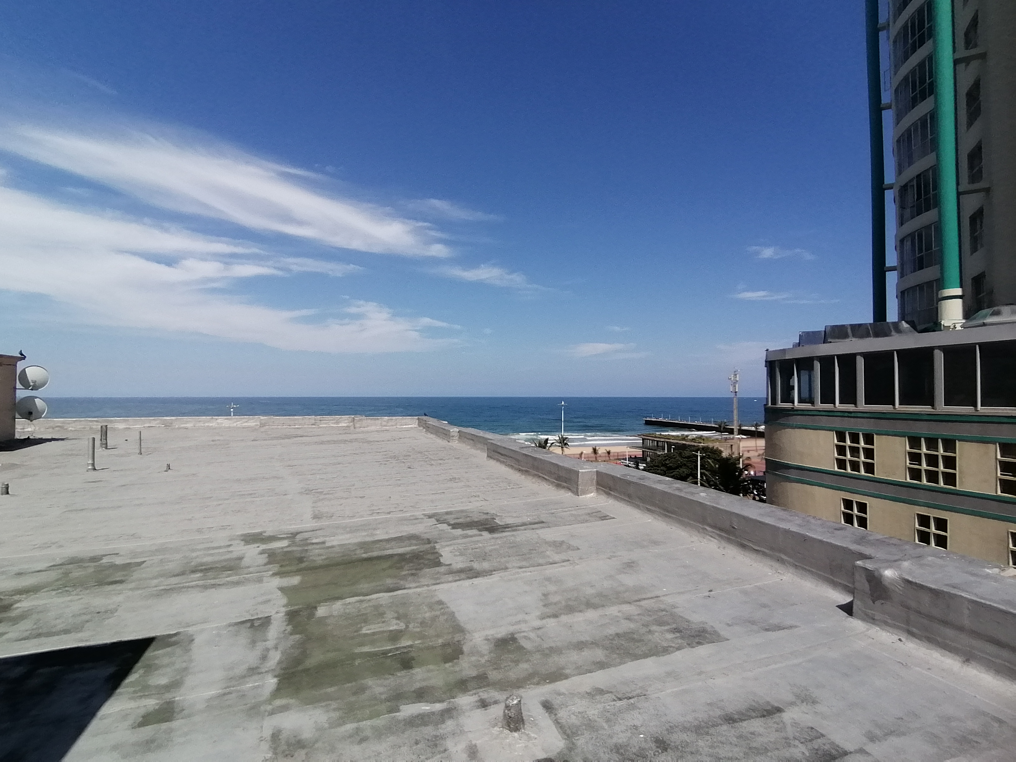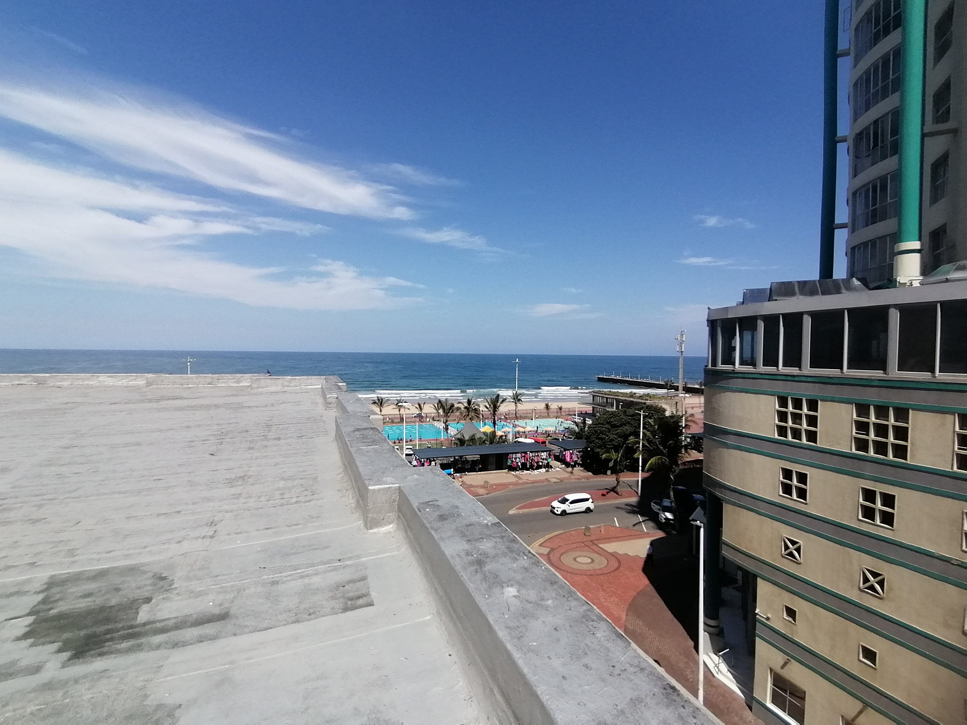 Offers direct Beachfront and pool access . Penthouse opens onto the roof Top with a seating area and beautiful Ocean Views . Salt Pools right opposite the unit . A 5 minute walk to the beach and pool. Walking distance to Restaurants supermarket Suncoast Casino Ushaka Marine World, Milky Lane etc. Lovely corner unit .CCTV Cameras and Security . Spacious share block