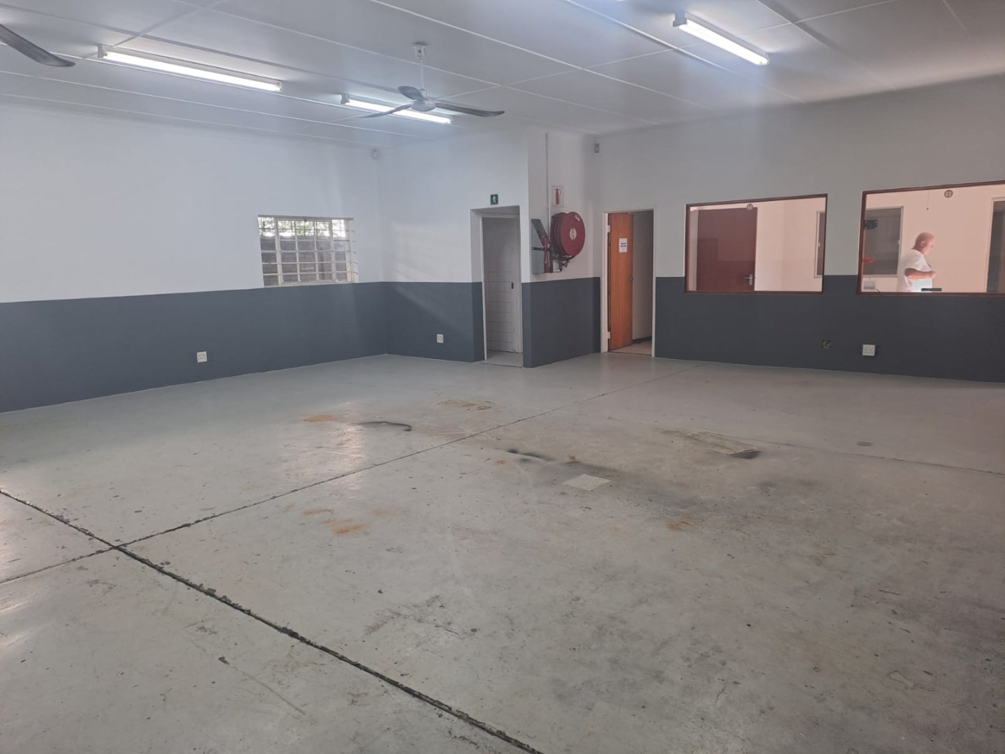 This property is located in a high activity area and accessible from main arterial roads in East London. The buildings are secured by boundary walls, barbed wire, CCTV, alarm system and two access gates (one remote controlled). Most of the yard area is concrete with both under cover and open parking. The 4 interleading offices are neat with blinds, air conditioning and laminate or tiled floors. There are 4 workshops with painted concrete floors, roll-up doors and the largest of these workshops is 160sqm, Staff have access to a large kitchen/entertainment area with a built-in braai, 3 separate bathrooms, a server room and mezzanine storing space of 25sqm.