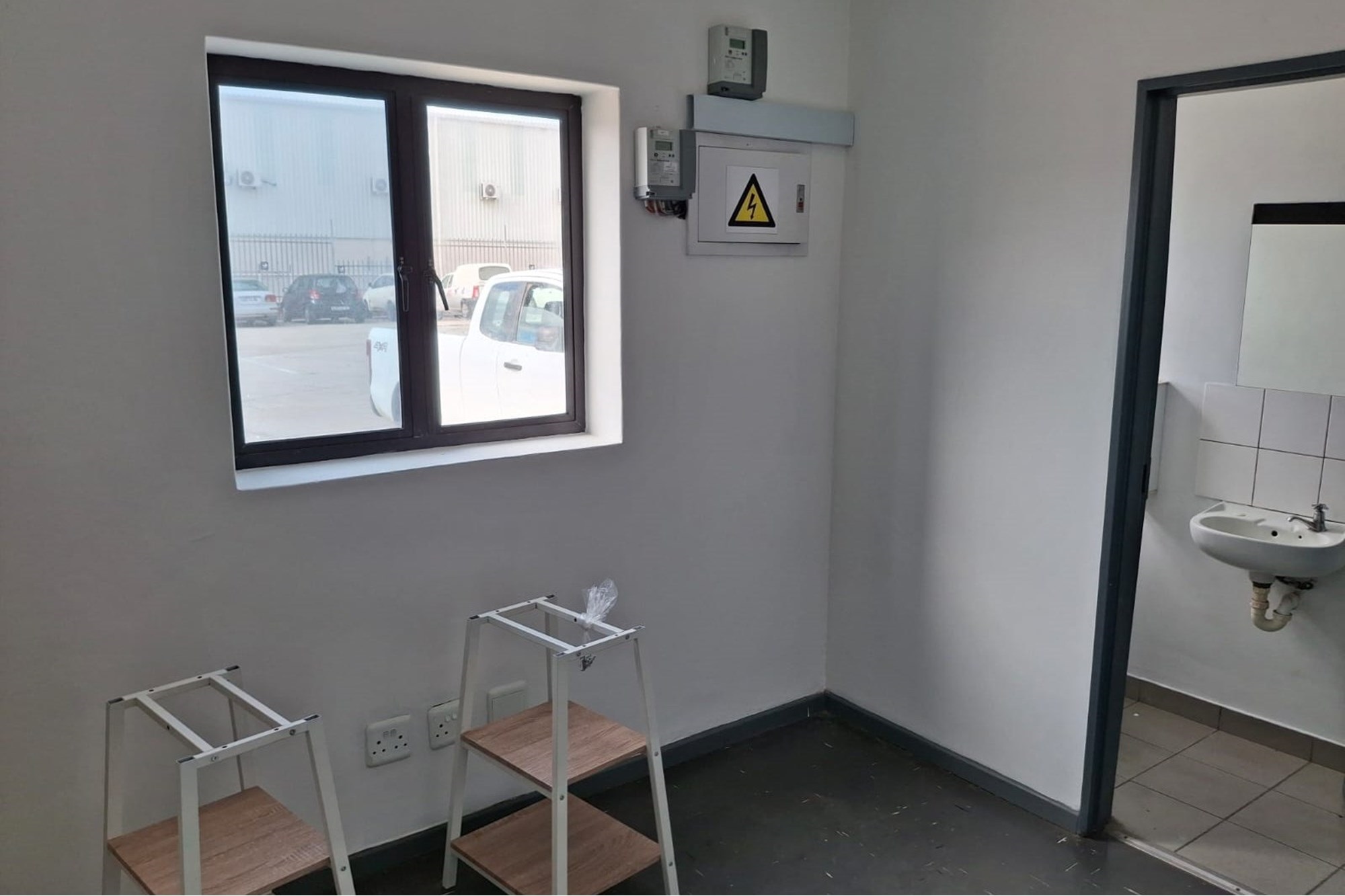 2 x offices, ablutions , roller shutter door. Good roof height.