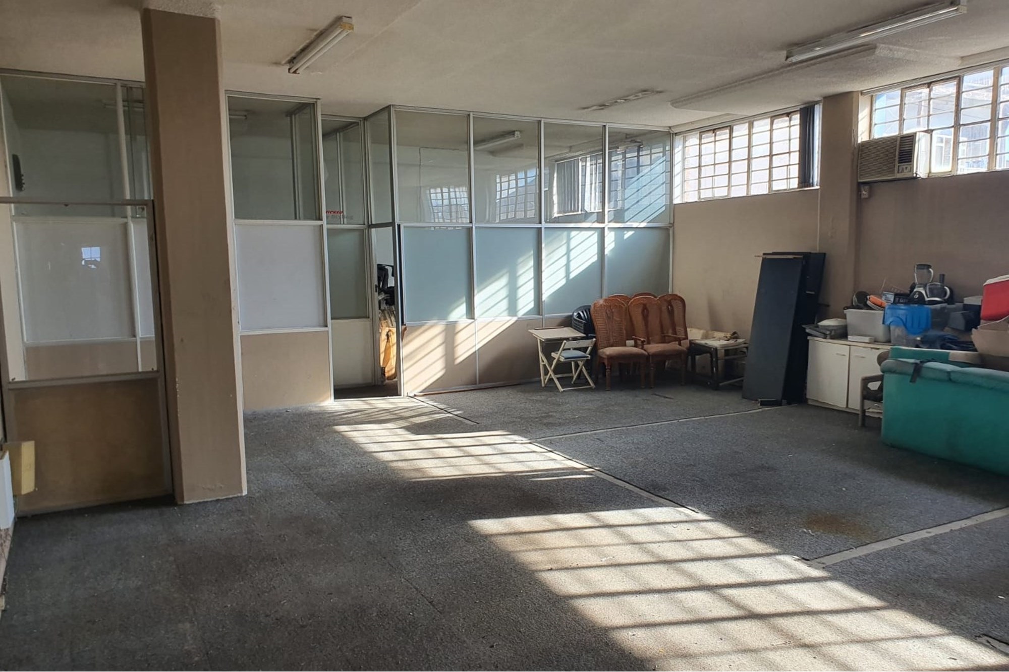 Access is via a ramp leading to a large industrial roller door, allowing for smooth movement of goods and equipment. The facility includes three air-conditioned offices, providing comfortable space for administration and operations.