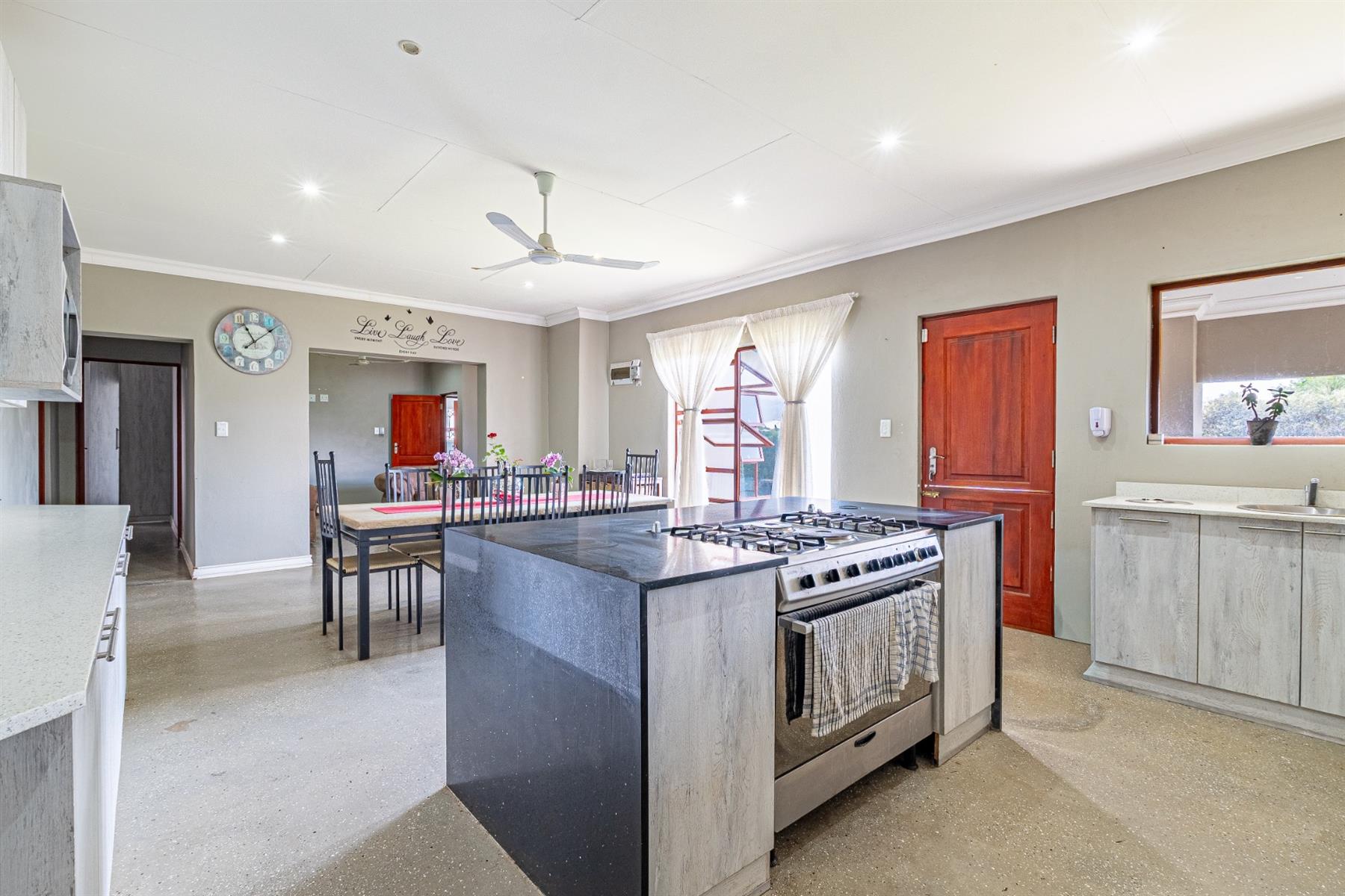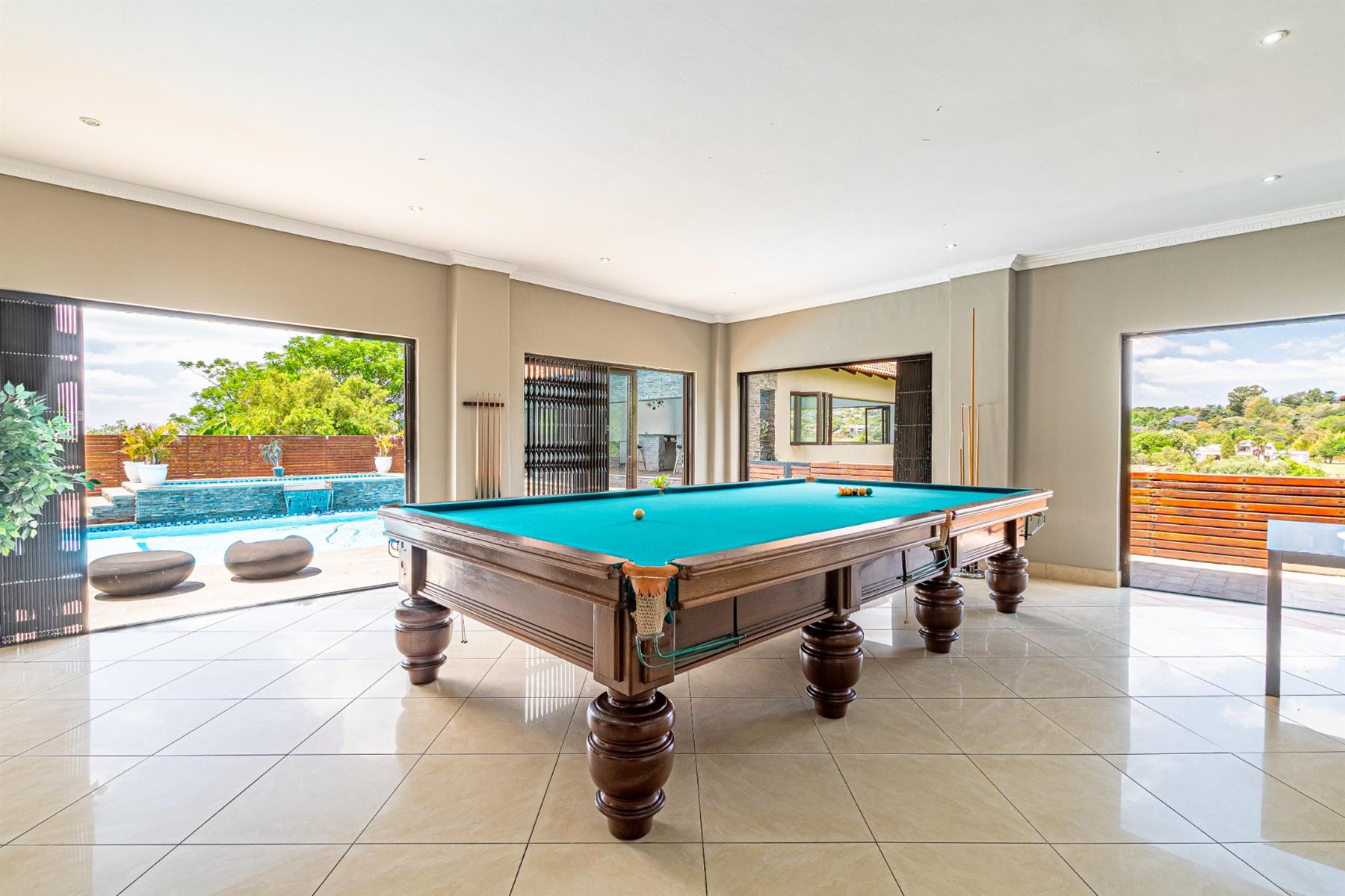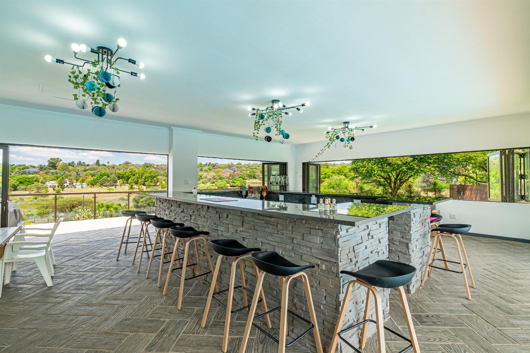 The majestic main house boasts five spacious bedrooms, each with its own en-suite bathroom, ensuring that everyone has their own private retreat. The double-story home features a stunning entertainment area, perfect for hosting lavish gatherings. The pièce de résistance is the large pool and jacuzzi, complemented by a Boma fire pit, ideal for cozy nights under the stars. The indoor entertainment area and bar is designed for effortless entertaining, with doors that open up to create a seamless indoor-outdoor experience. The built-in braai ensures that you can enjoy this space year-round. The main house features an open-plan kitchen, dining area, and lounge, with plenty of space for a pool table. The stacker doors throughout the house open up to create a beautiful airflow, and the stunning views of the pool and large landscaped rolling garden areas are simply breathtaking.