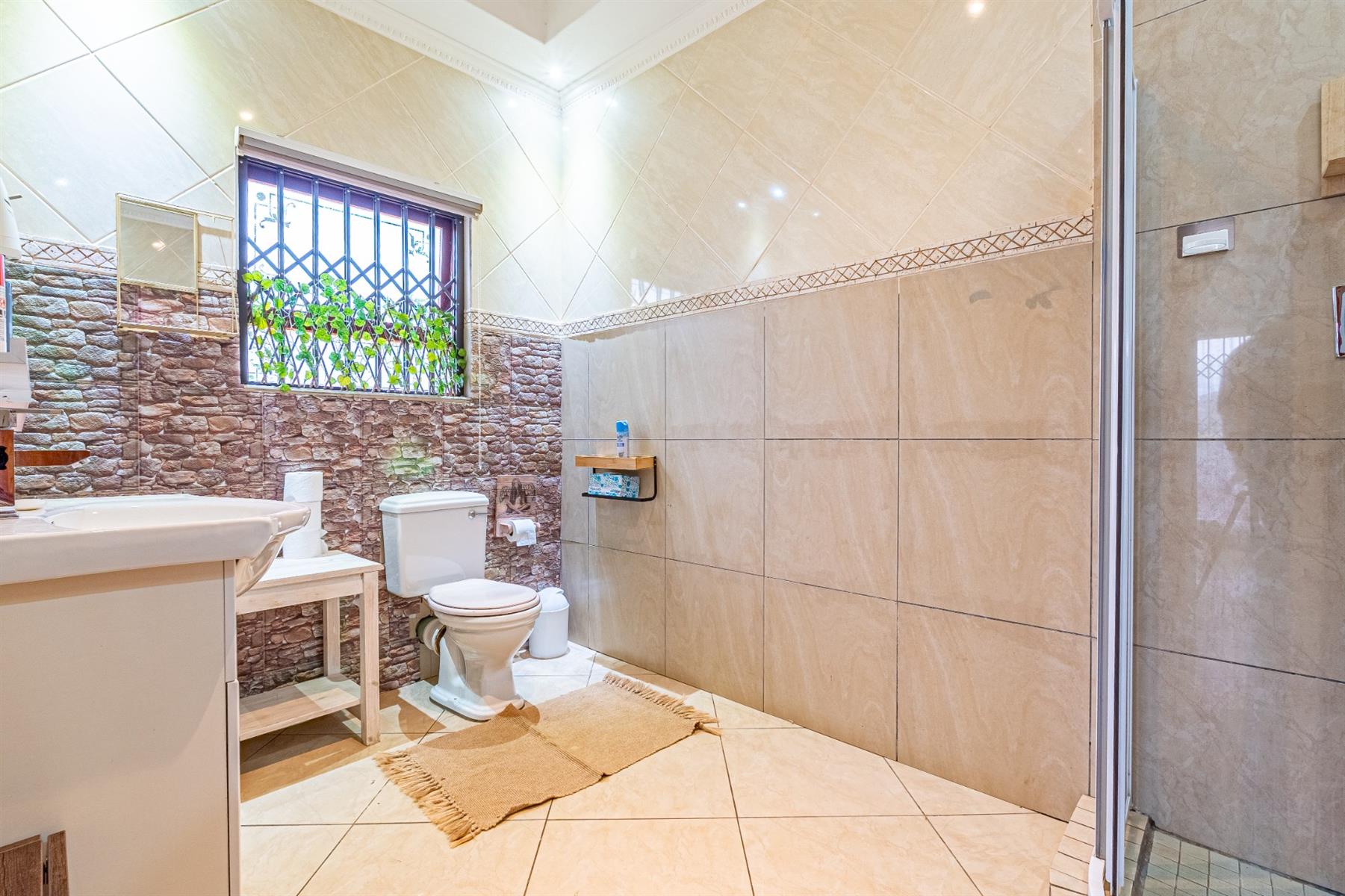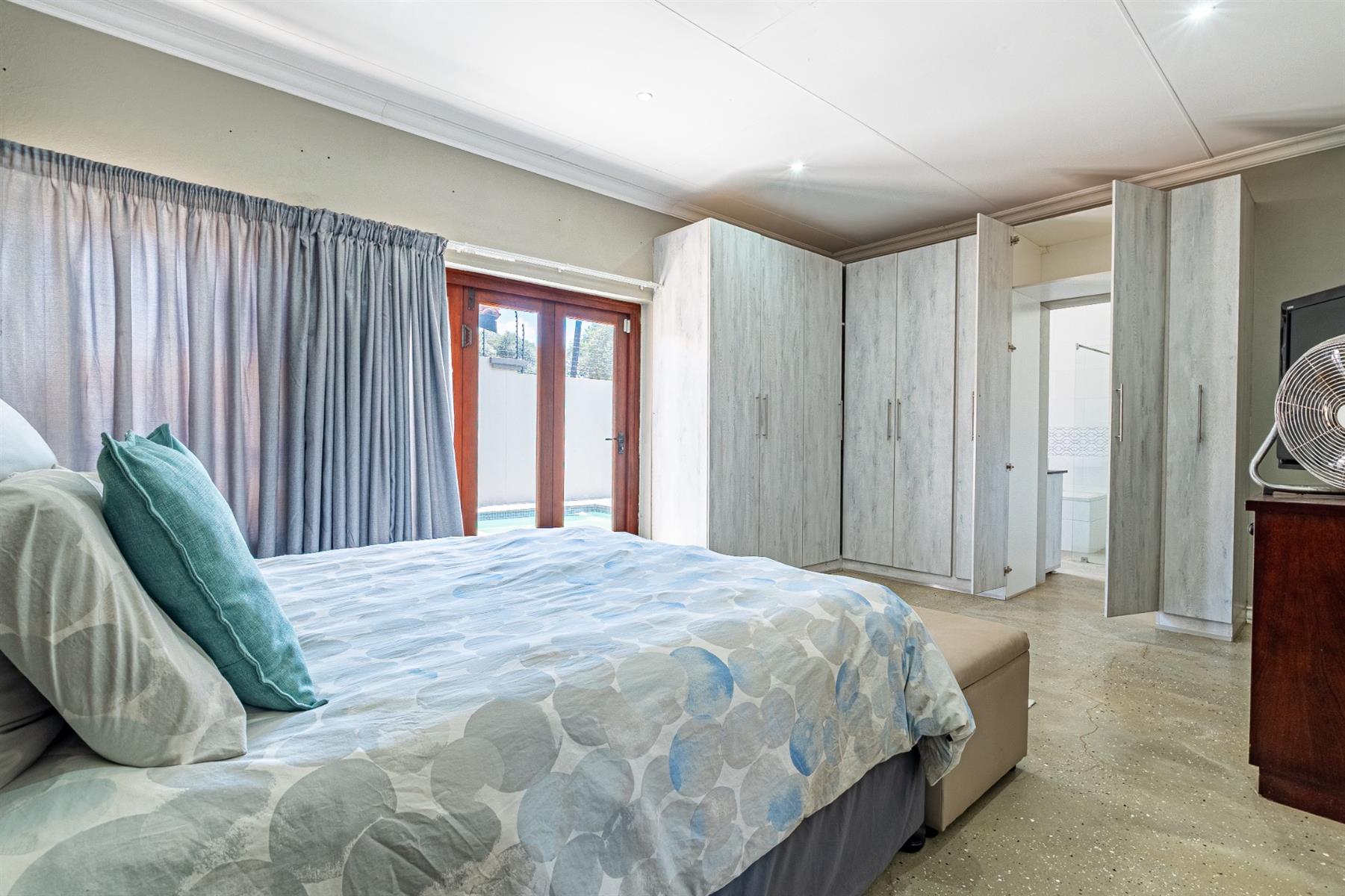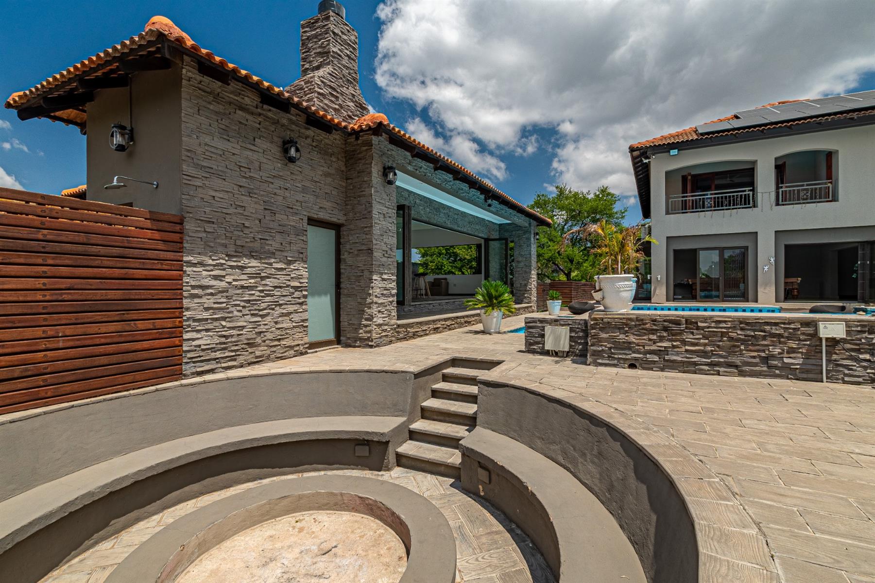 The majestic main house boasts five spacious bedrooms, each with its own en-suite bathroom, ensuring that everyone has their own private retreat. The double-story home features a stunning entertainment area, perfect for hosting lavish gatherings. The pièce de résistance is the large pool and jacuzzi, complemented by a Boma fire pit, ideal for cozy nights under the stars. The indoor entertainment area and bar is designed for effortless entertaining, with doors that open up to create a seamless indoor-outdoor experience. The built-in braai ensures that you can enjoy this space year-round. The main house features an open-plan kitchen, dining area, and lounge, with plenty of space for a pool table. The stacker doors throughout the house open up to create a beautiful airflow, and the stunning views of the pool and large landscaped rolling garden areas are simply breathtaking.