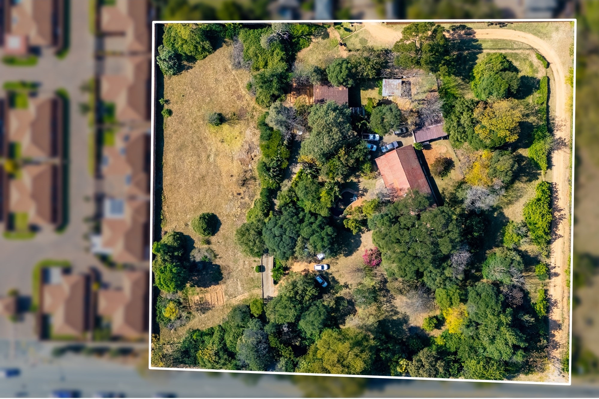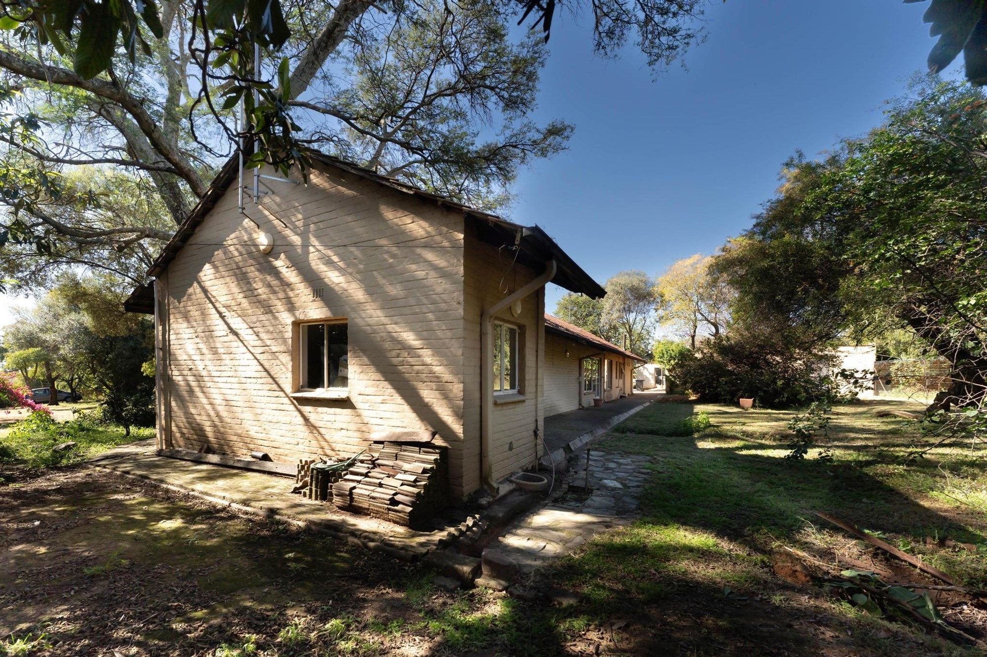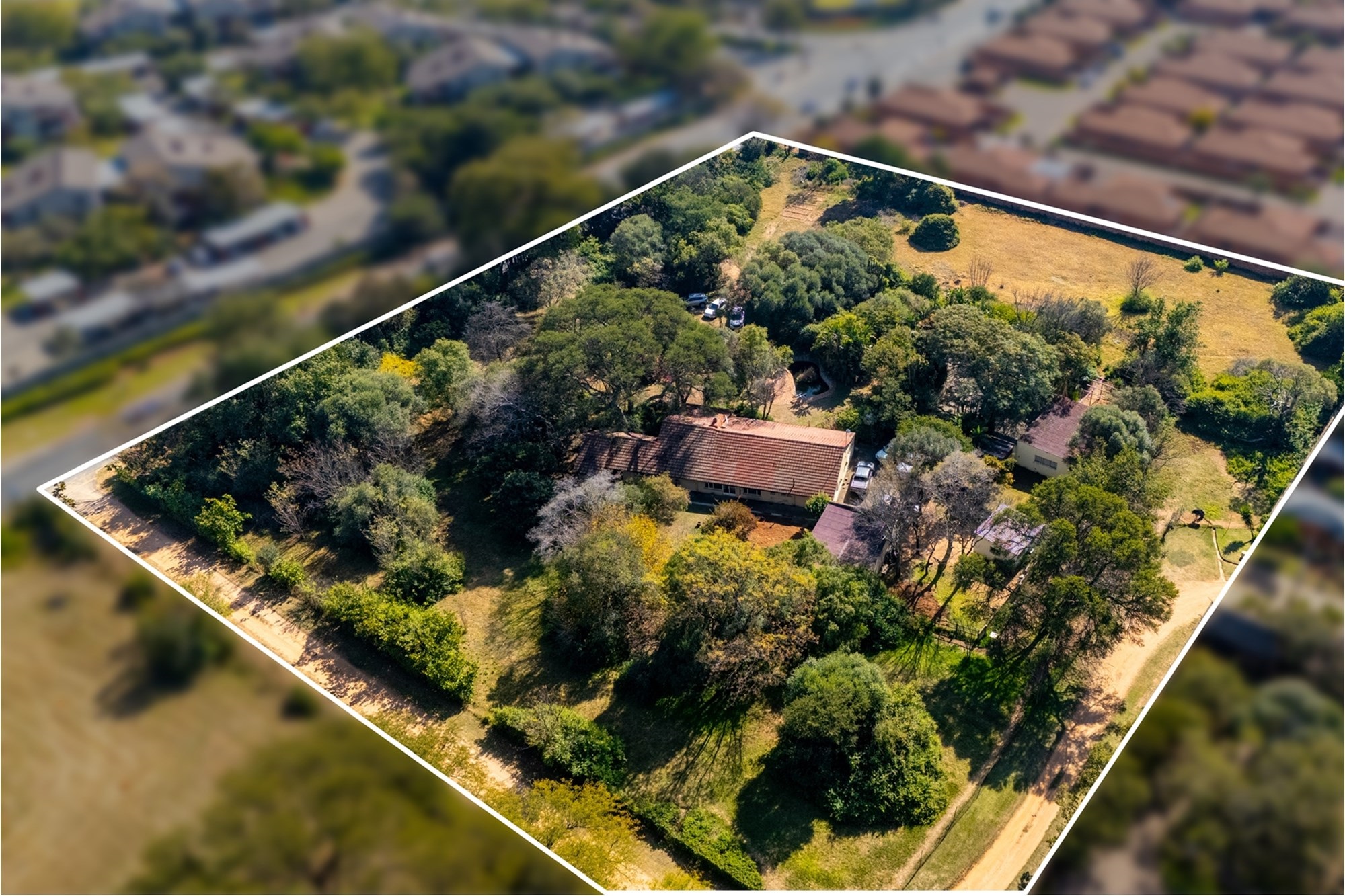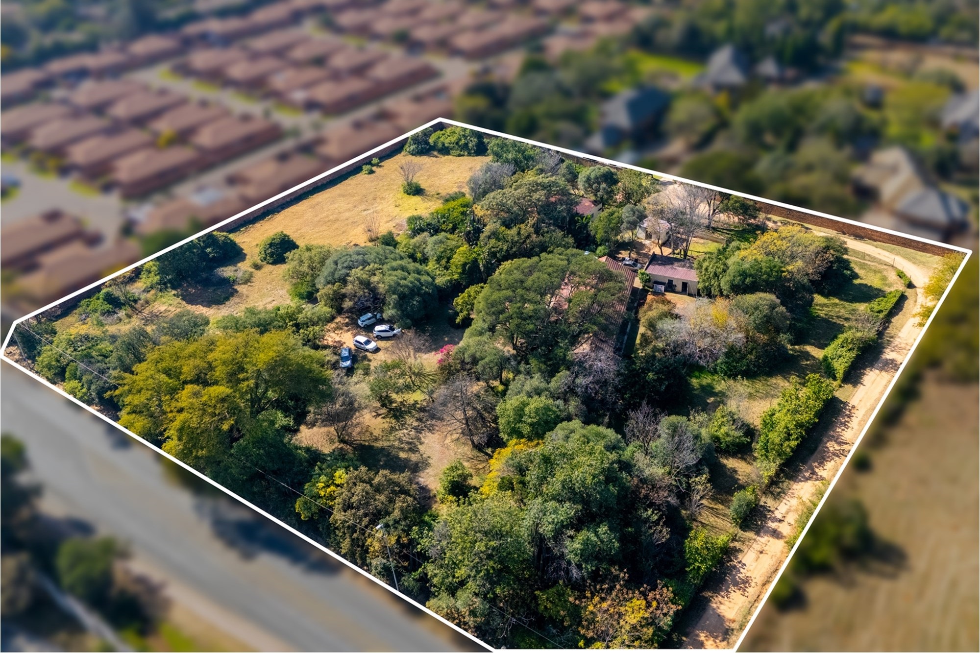 Although the property currently includes an aged farmhouse, a 2-bed cottage, garages, and outbuildings, its true value lies in its development potential. With an approved Res 1 development plan, you have the chance to create a complex featuring 16 erven ranging from 400sqm to 800sqm each, with an approximate end value of R2.5m per erf. All the necessary surveys have already been completed, and bulk services are readily available - all that remains is for you to bring your architect`s vision to reality.