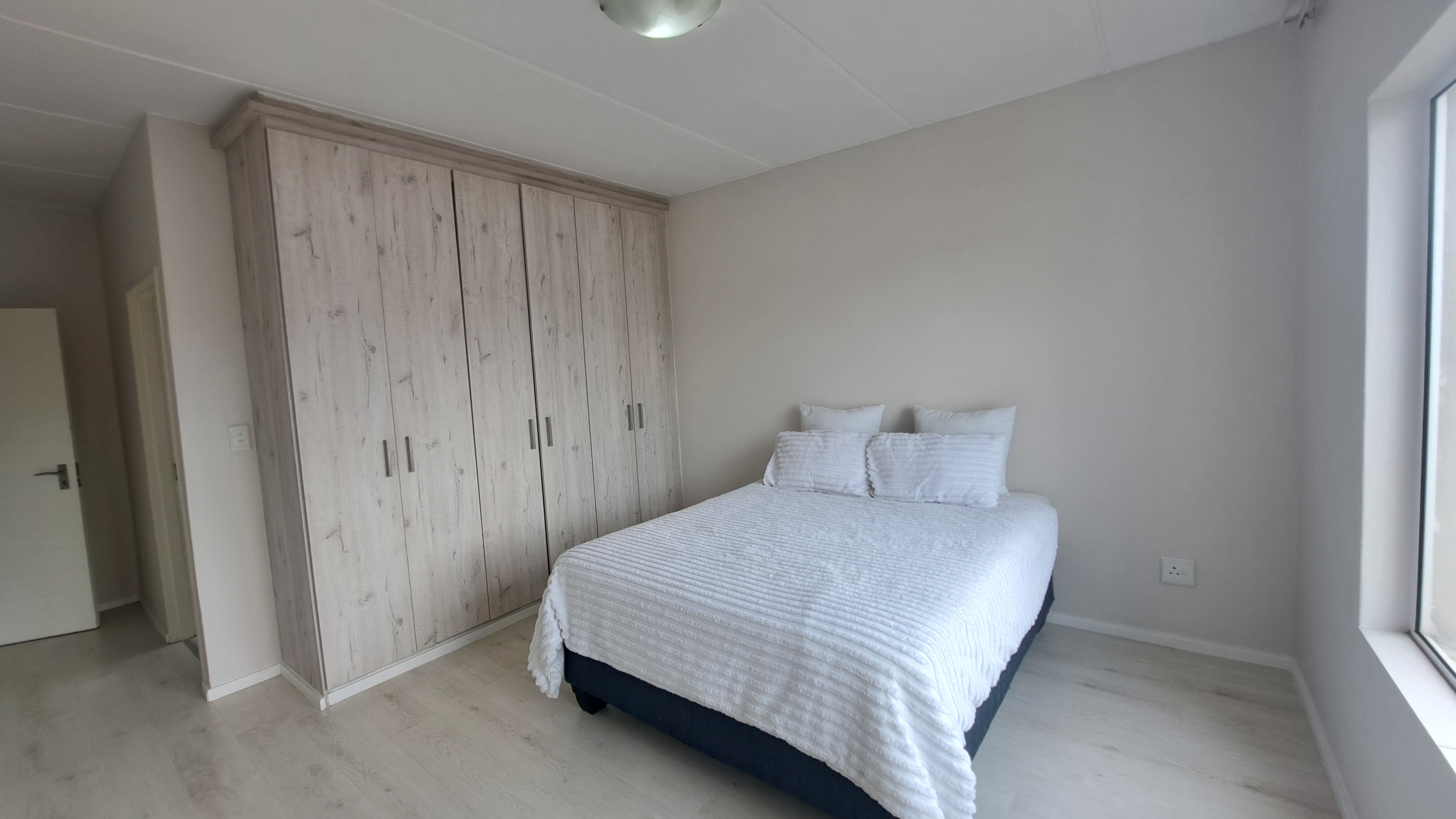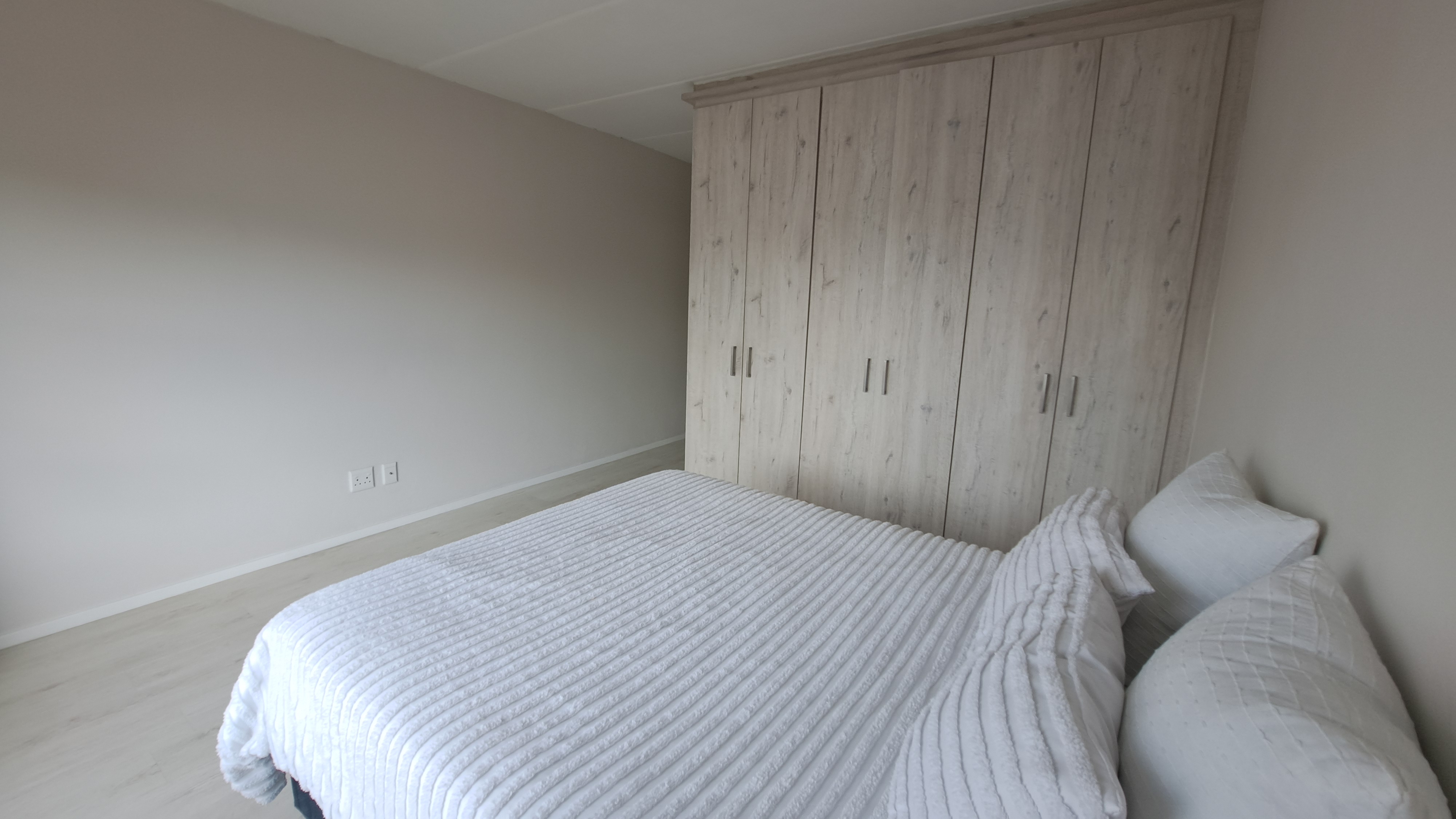 > 3 well sized Bedrooms with Laminated flooring & Built-in cupboards with enough cupboard space. The main Bedroom can easily accommodate king size bed and leads into an amazing ensuite bathroom with large shower, basin and toilet (no Bathtub).