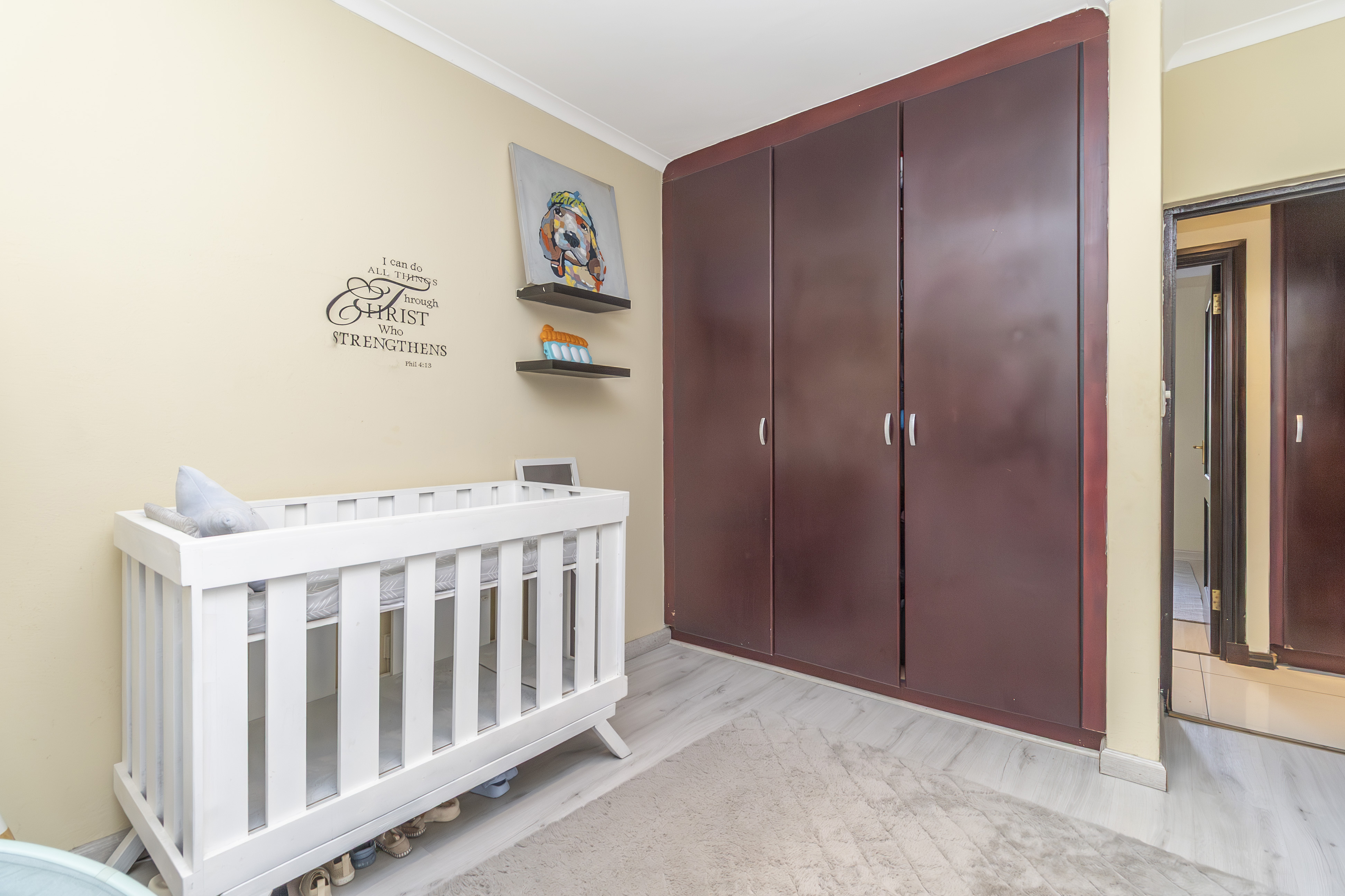 The bedroom upstairs is tiled and built-in cupboards, this can be used as the main bedroom.