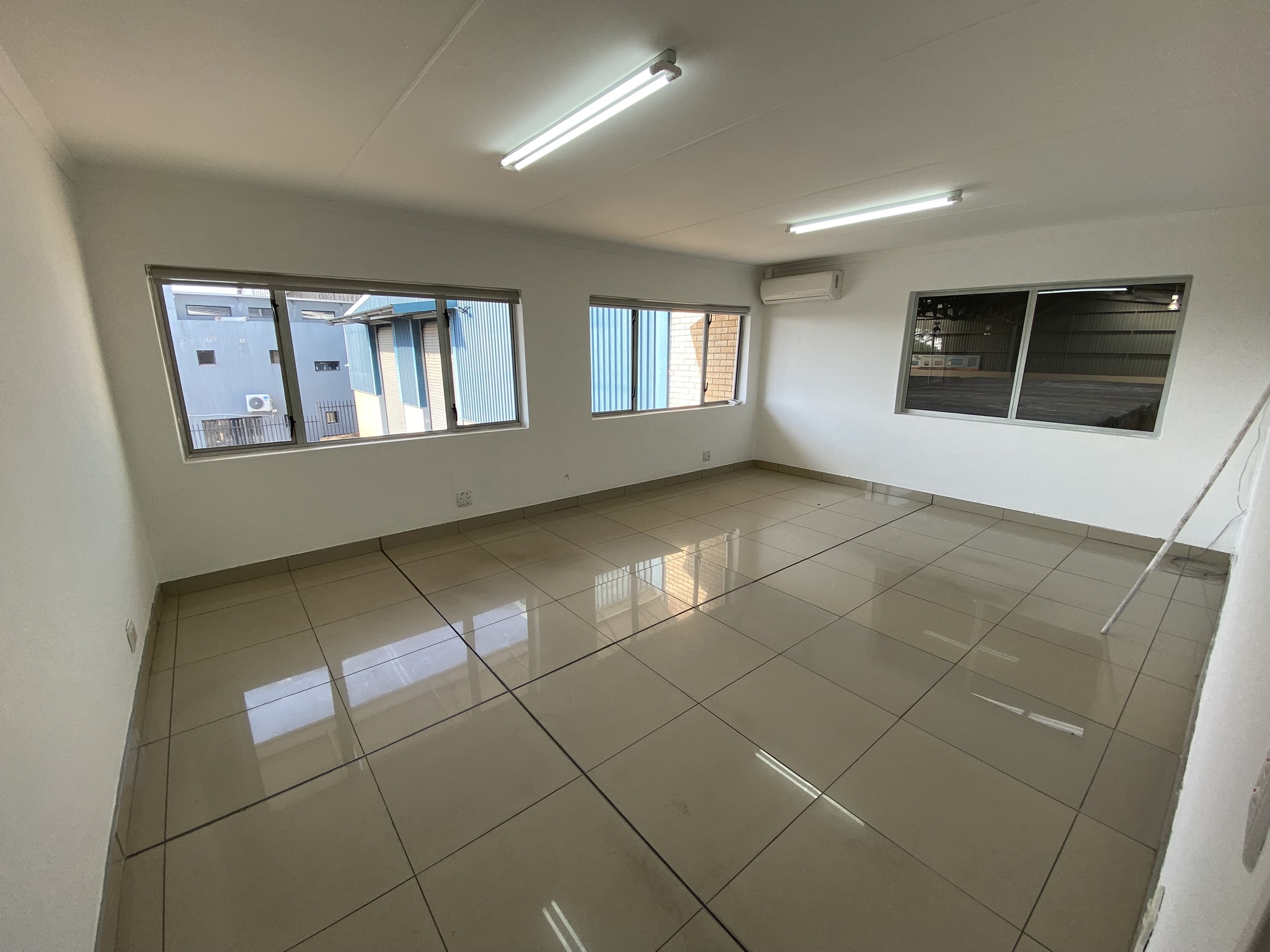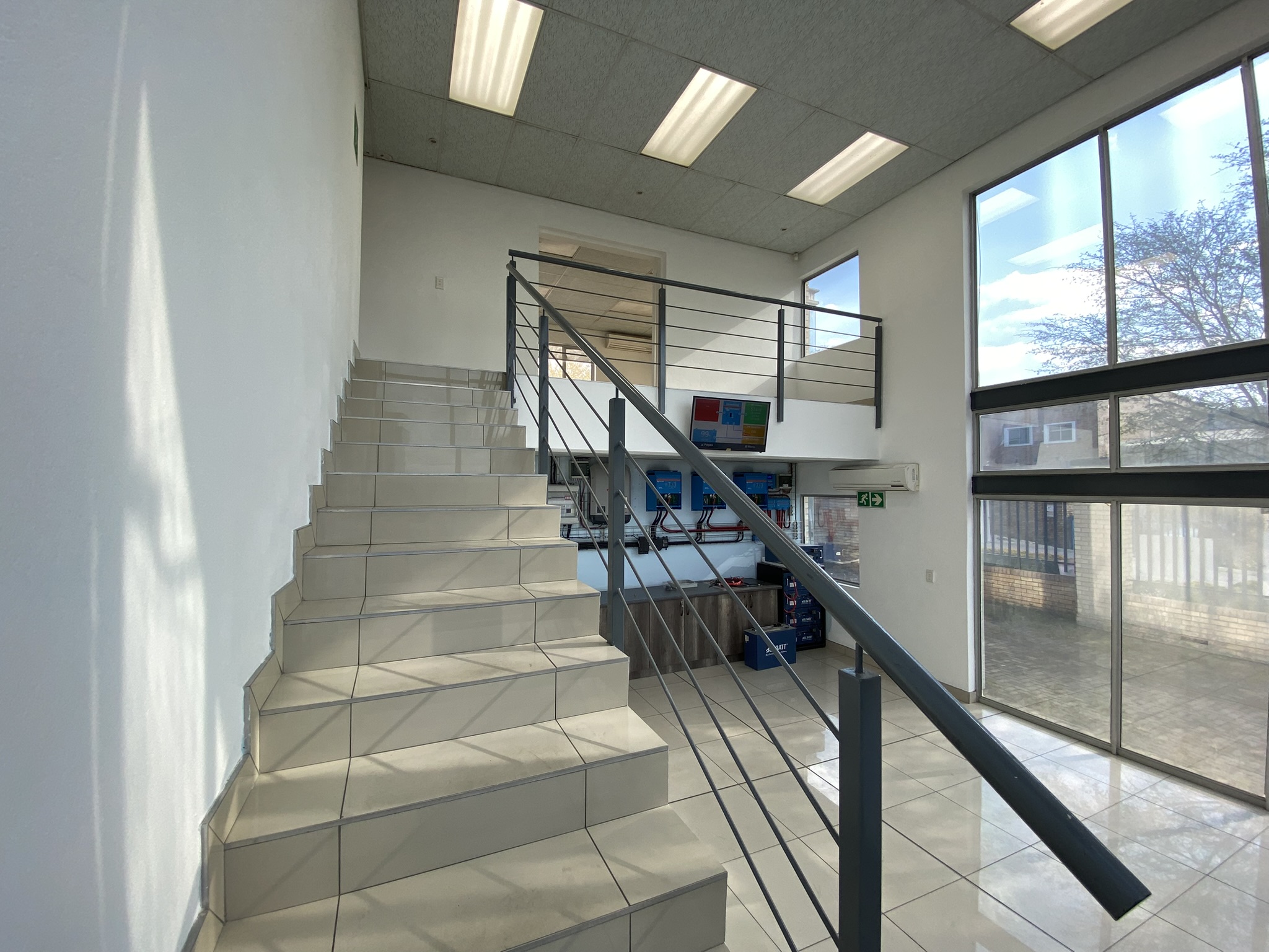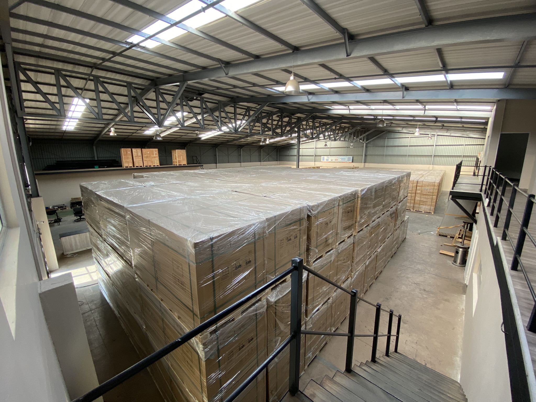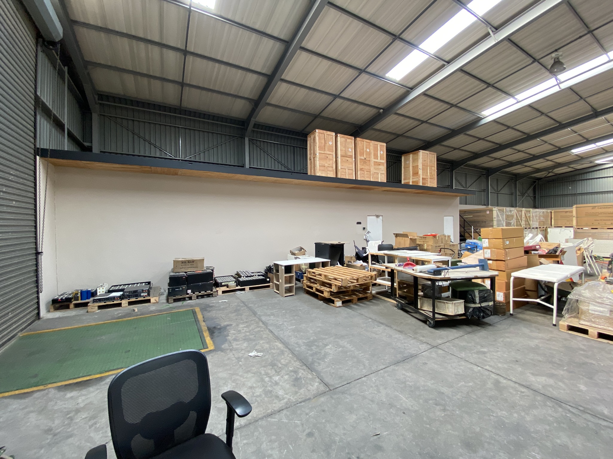 Positioned within a secure business park with 24-hour access control, and set on a 2388m2 stand, the property comprises a 1,235m2 warehouse with a 420m2 office component. The warehouse includes two roller-shutter doors (one on-grade and one dock-level), 6m height to eaves, and a 150m2 mezzanine.