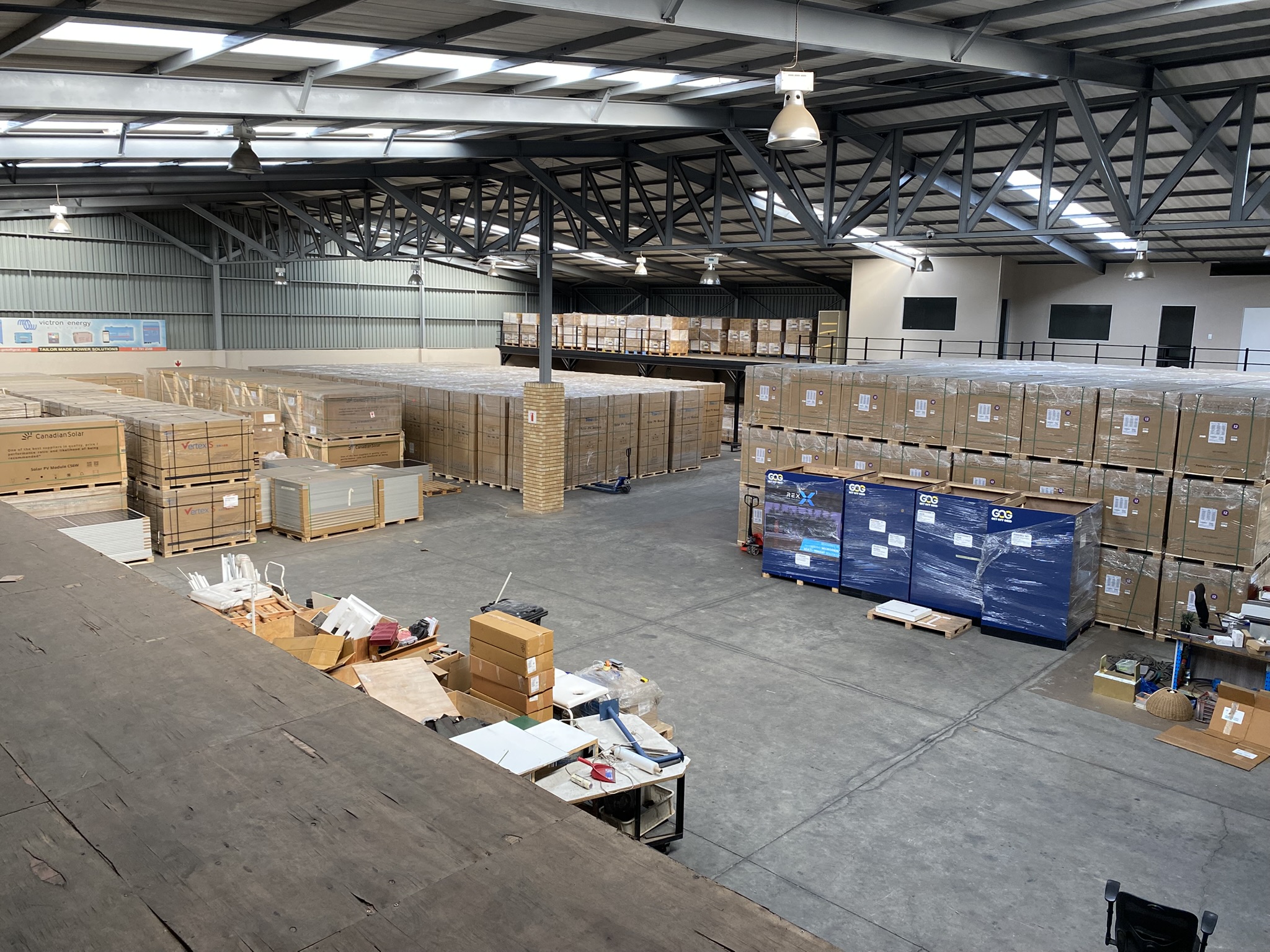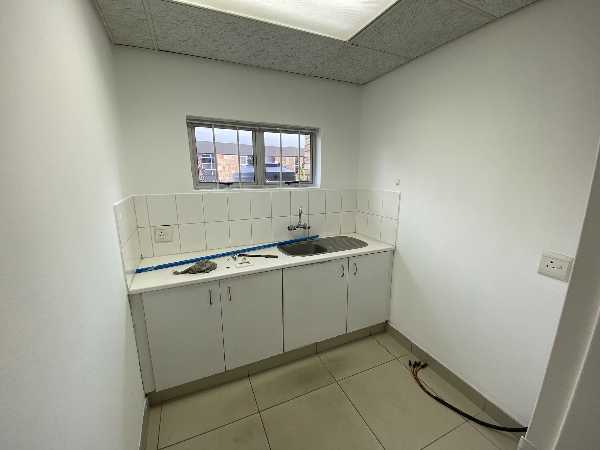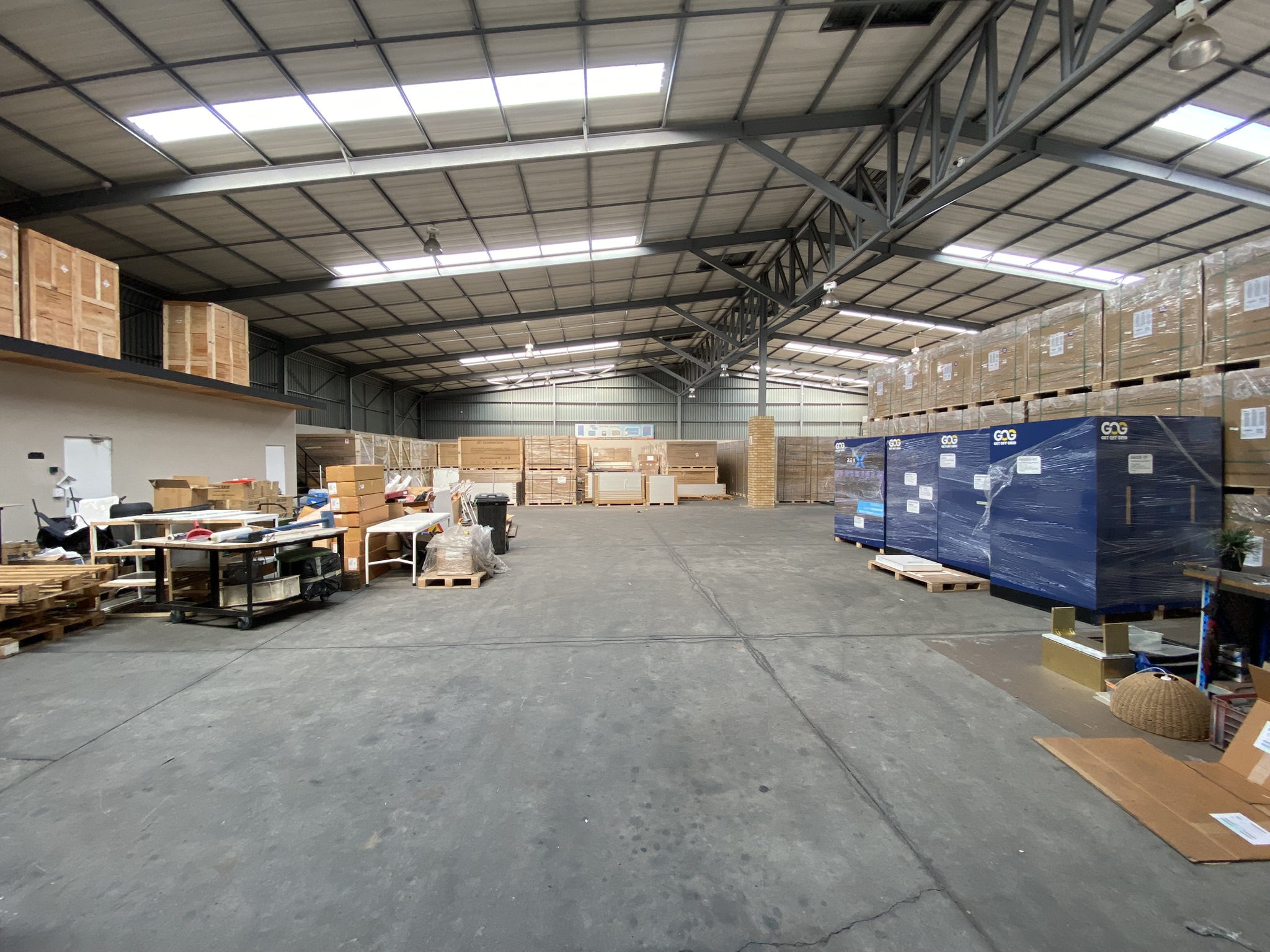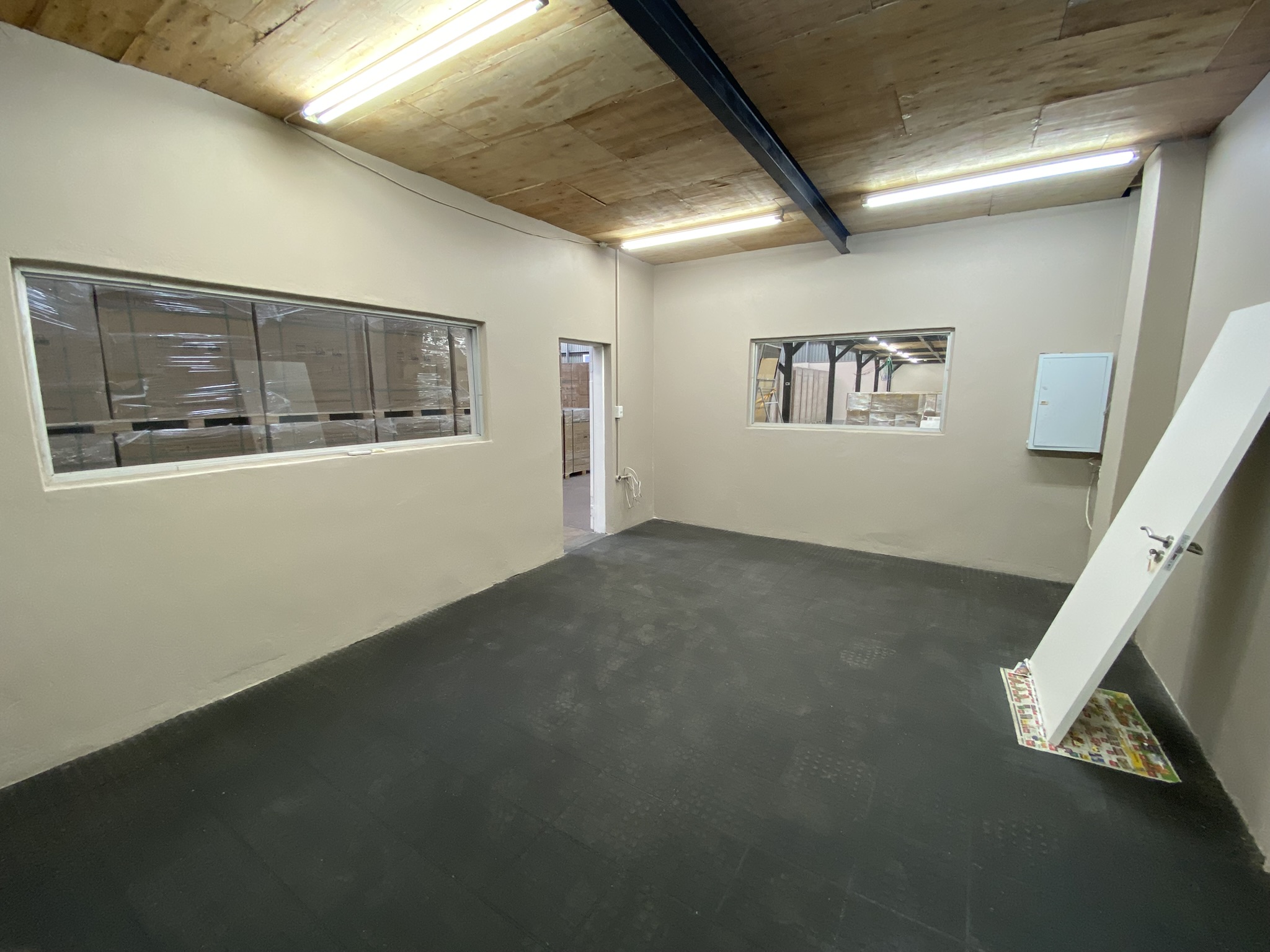 Positioned within a secure business park with 24-hour access control, and set on a 2388m2 stand, the property comprises a 1,235m2 warehouse with a 420m2 office component. The warehouse includes two roller-shutter doors (one on-grade and one dock-level), 6m height to eaves, and a 150m2 mezzanine.