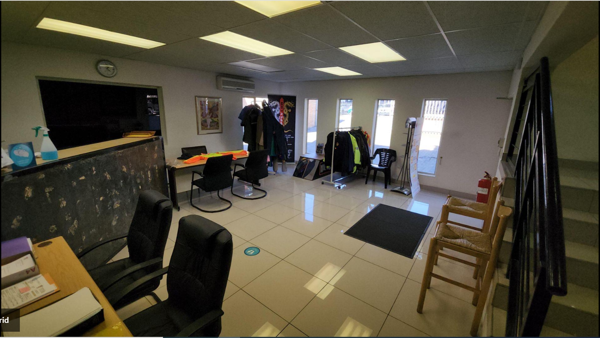 The unit has a beautiful entrance and reception leading to offices on ground and the first floor which over look the warehouse. All offices and reception are tiled.