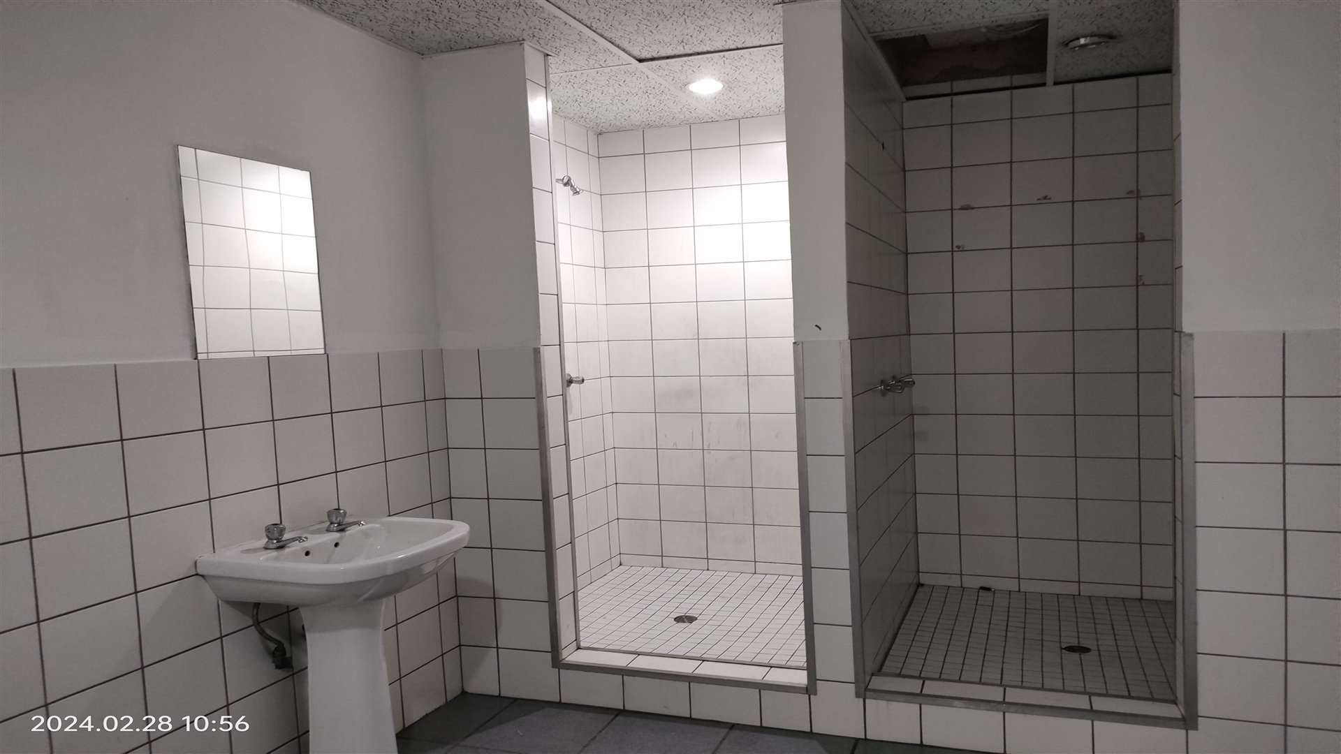 The warehouse, measuring 1736m2, has an eave height of about 8m and three 4m high roller doors. One roller door is "dock height", one has a dock leveller whilst the other is "on grade". The warehouse has its own ablutions which include staff showers and a canteen situated above the ablution block.