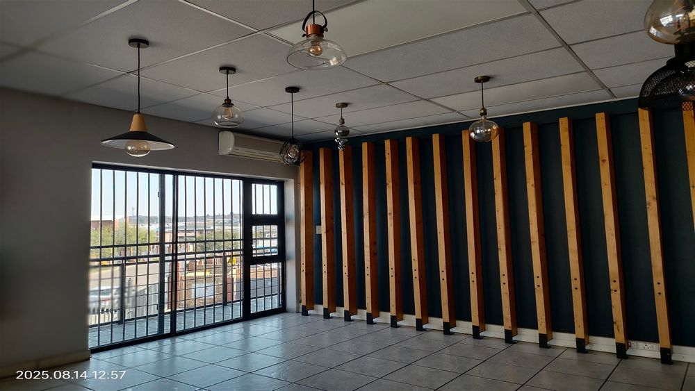 -First floor: Large open-plan office, modern glass-partitioned boardroom, two smaller partitioned offices, server and storage rooms, as well as a second kitchenette and male & female ablutions. The layout can be altered to suit tenant requirements.