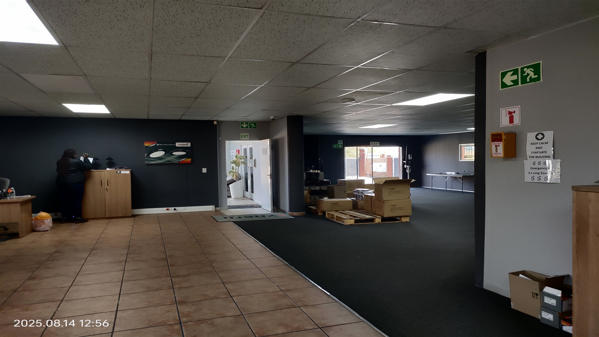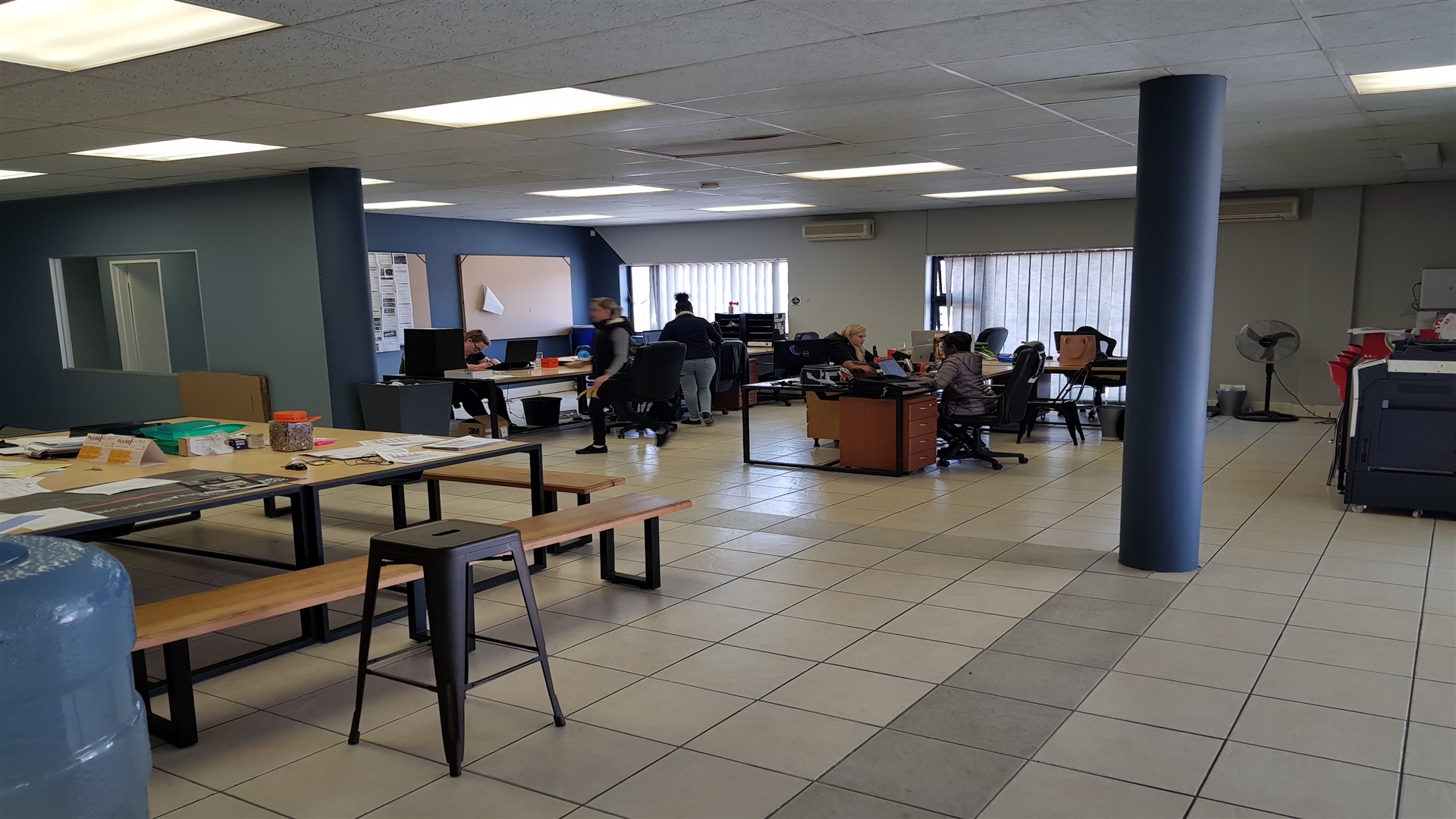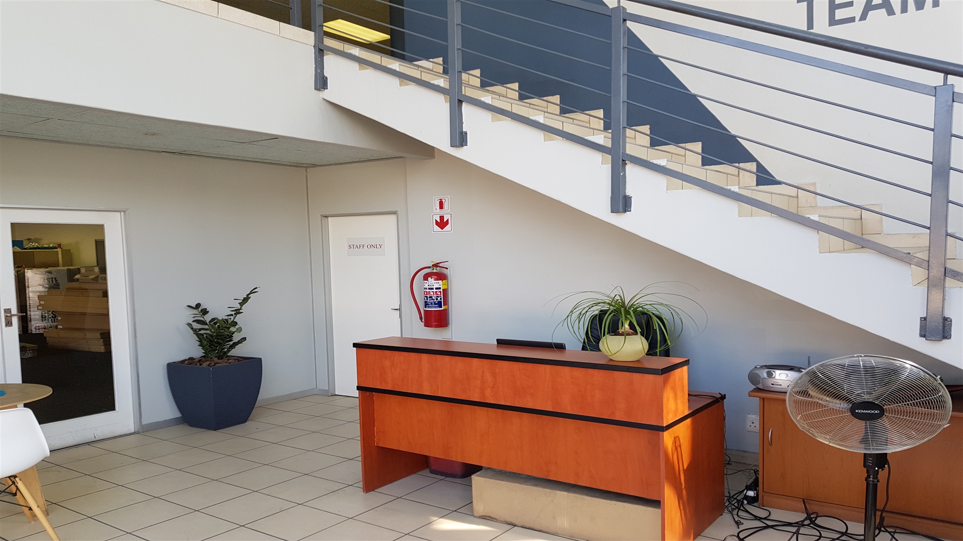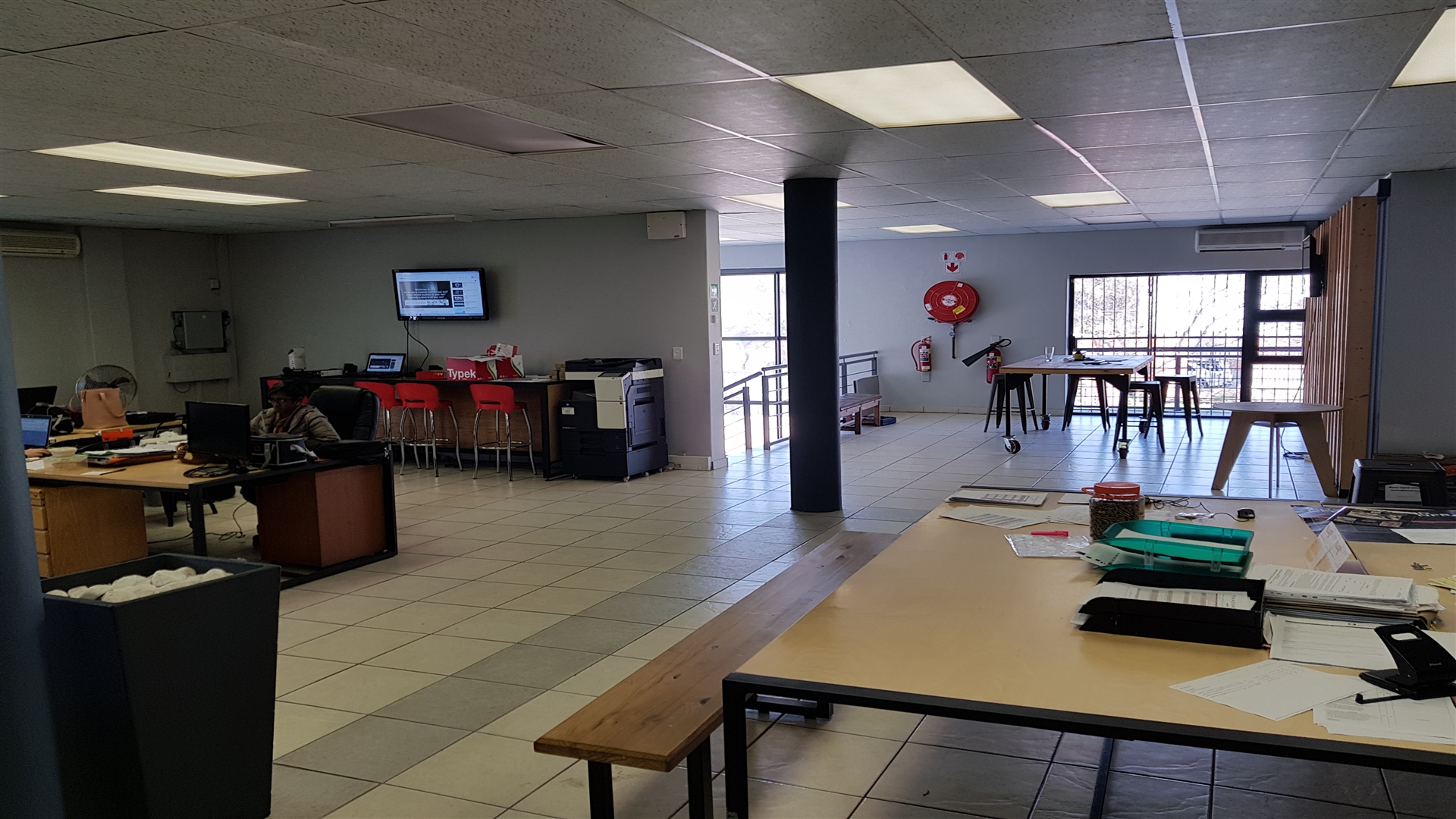 -Ground floor: Reception, mostly open-plan space, 1 kitchenette, male and female ablution.