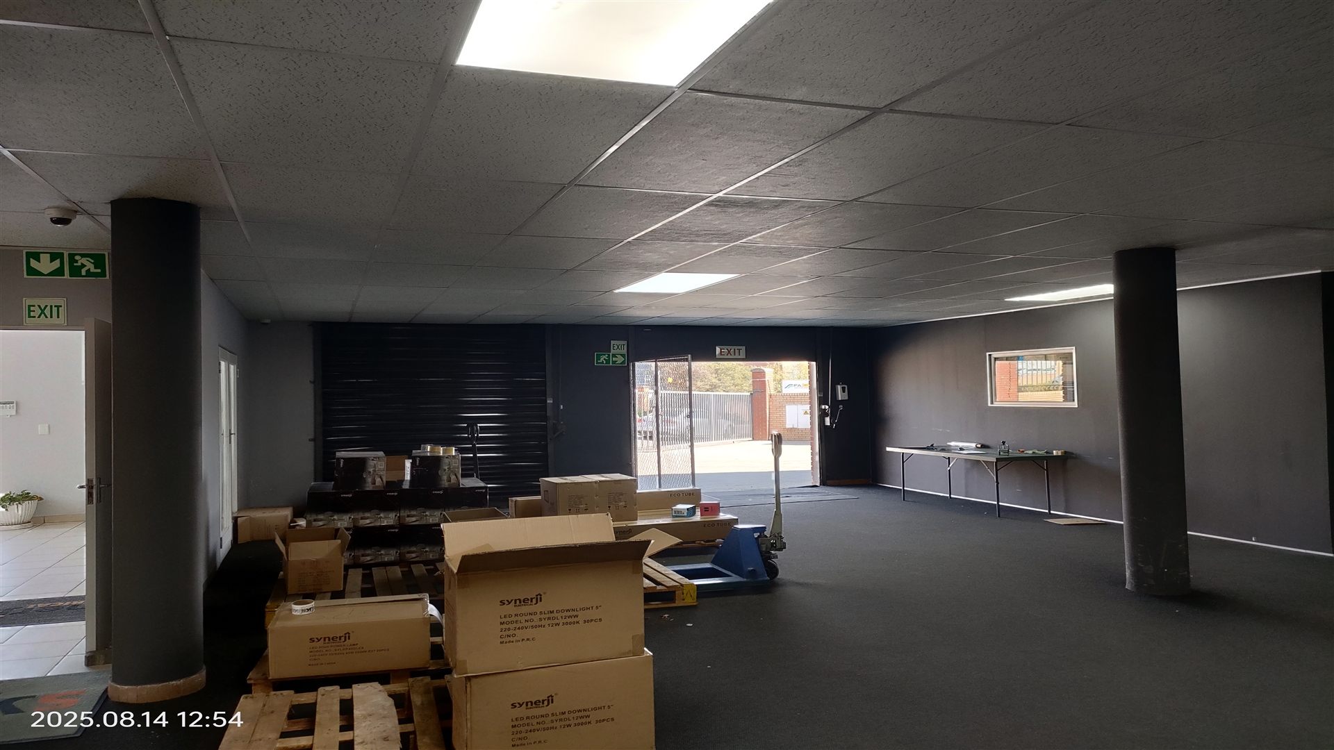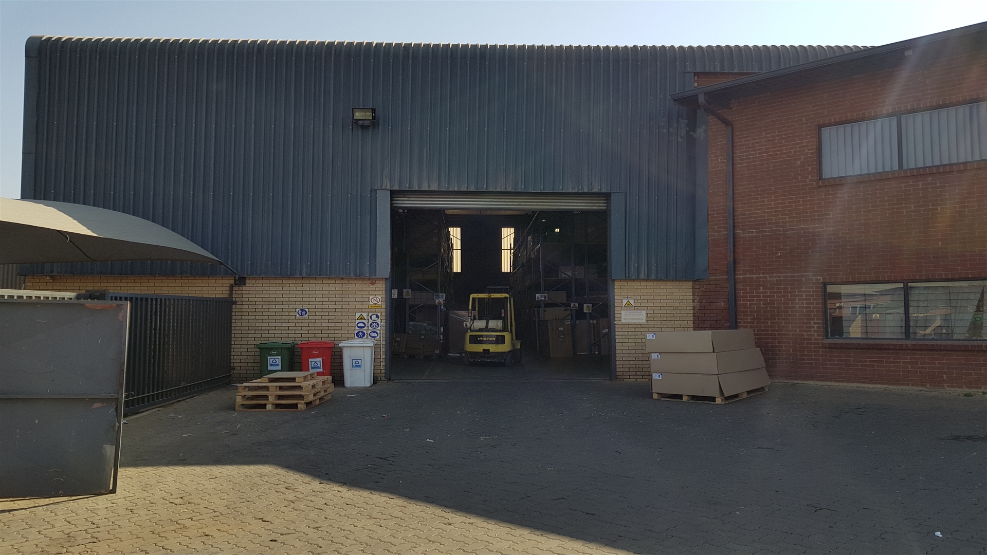 The warehouse is supplied with 150 amps 3-phase power, supporting light to medium industrial operations.