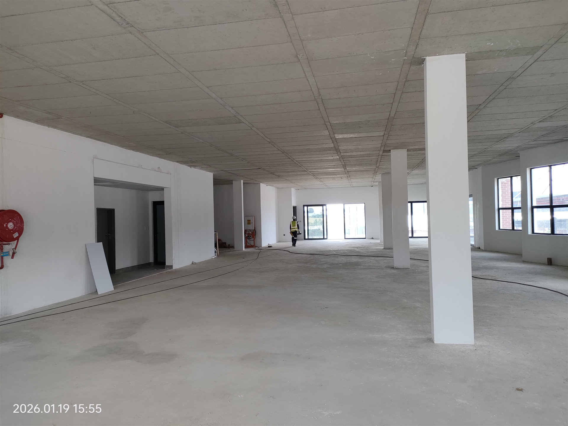 The building includes a passenger elevator in the office area.