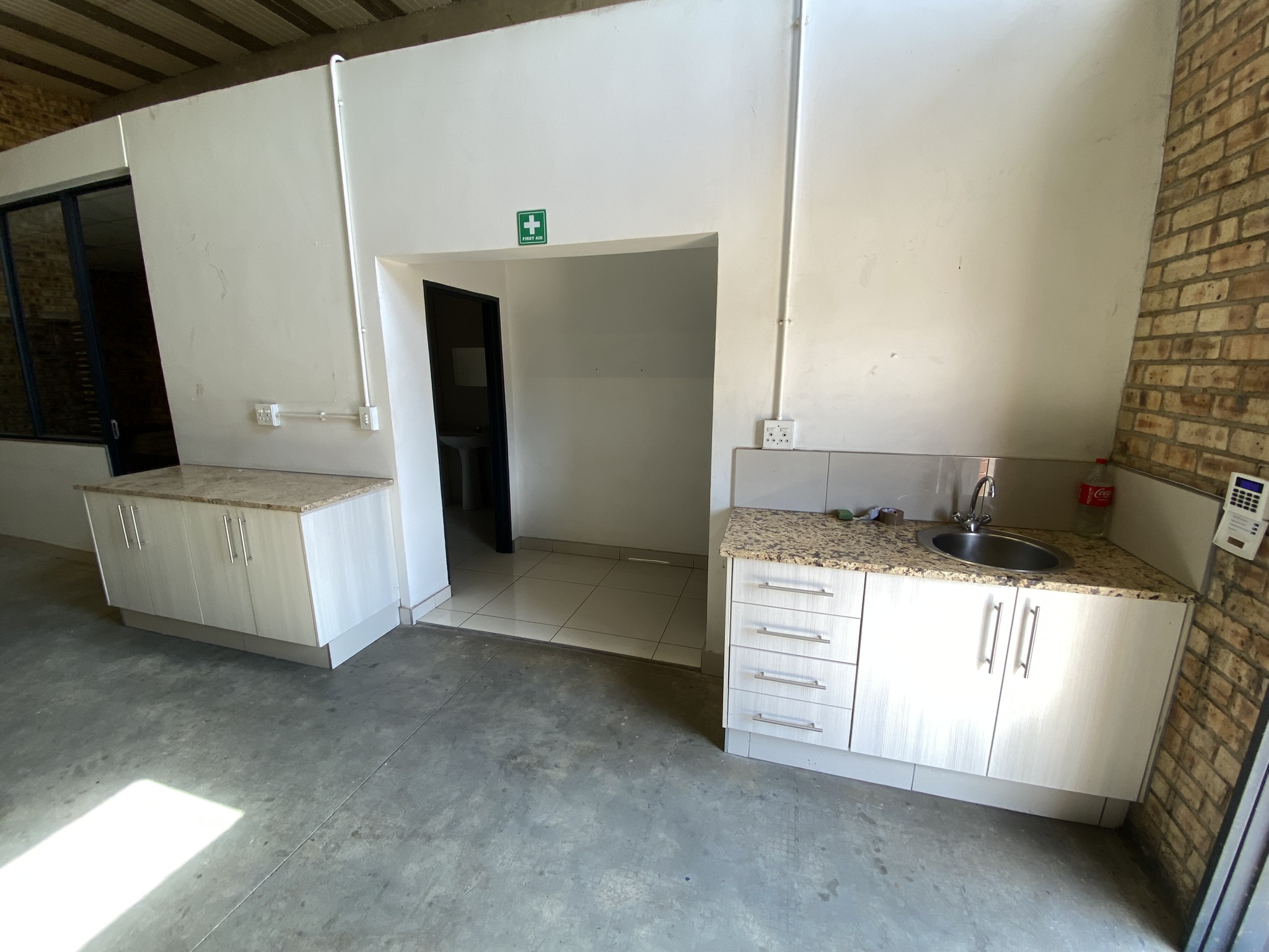 The unit comprises a warehouse with a large lockable storeroom, technical work area, kitchenette, and bathrooms. A three-metre-high roller shutter door with a canopy allows for convenient off-loading, even in inclement weather. The property is equipped with three-phase power, providing 80 amps per phase. Occupation: 1 November 2025.