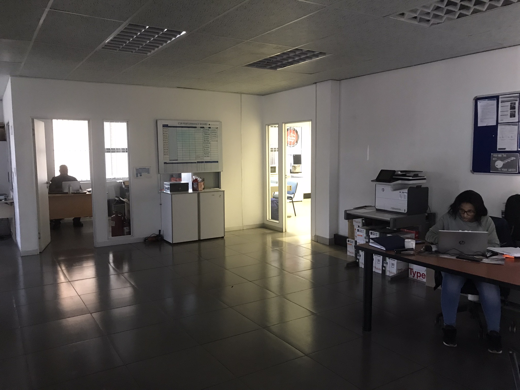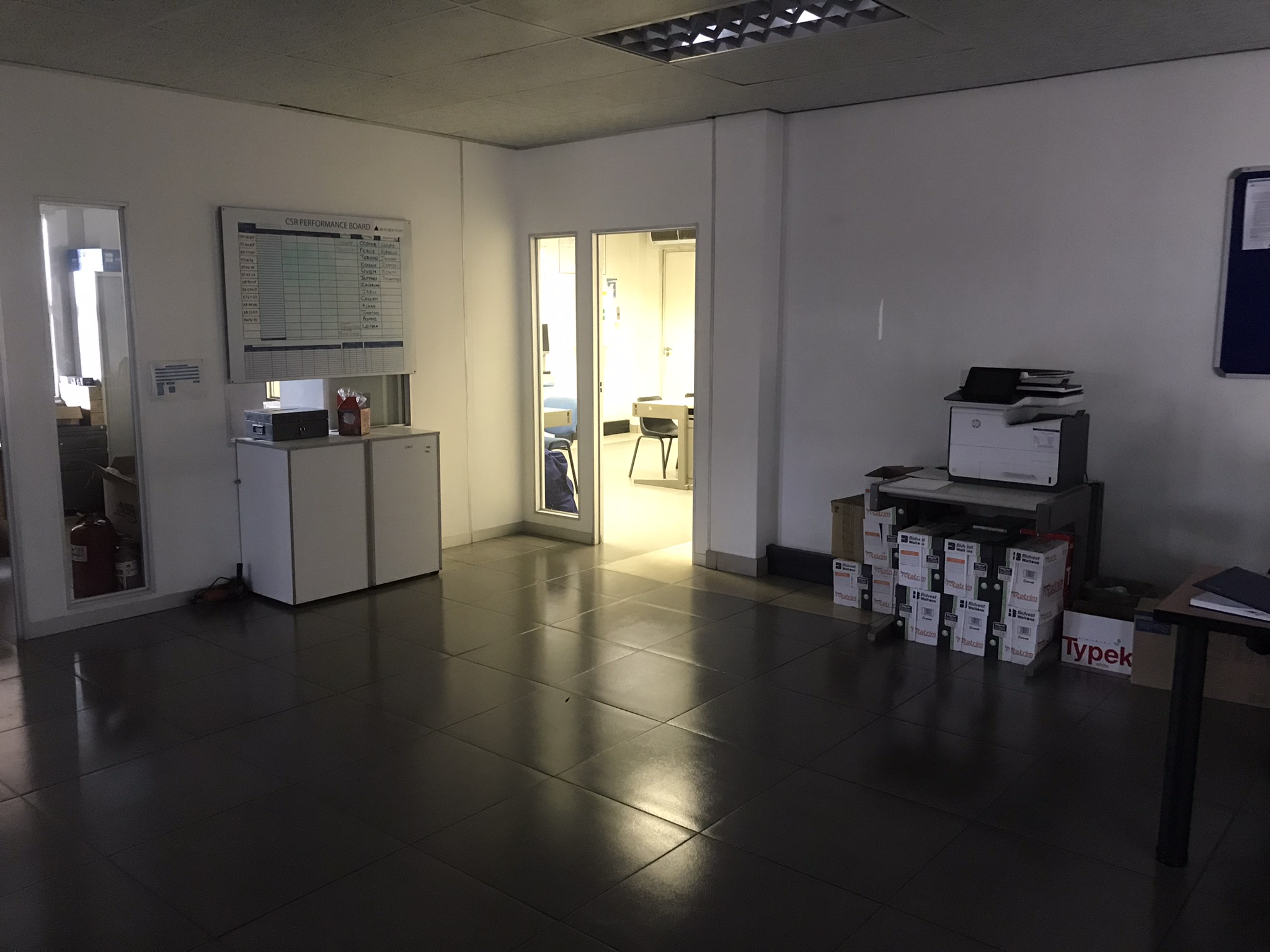 This standalone 2358m2 warehouse facility set on a 3600m2 stand has 622m2 of office space, split between the ground and first floors. There is a large reception area, five offices, a boardroom, kitchenette, staff pause area, a large open plan area and a store room. The warehouse is 1736m2 and has three on-grade, five meter roller-shutter doors, one of which can be converted to a dock-level receiving/dispatch bay. There is good height to the lowest point of the eaves and there is super-link truck access with separate entrance and exit gates to Aintree Avenue. 150 amps of three-phase power is available in the warehouse. There is a monthly levy of R1762.22 excluding vat and a monthly management fee: R1000 excluding vat. Occupation: 1 June 2025.