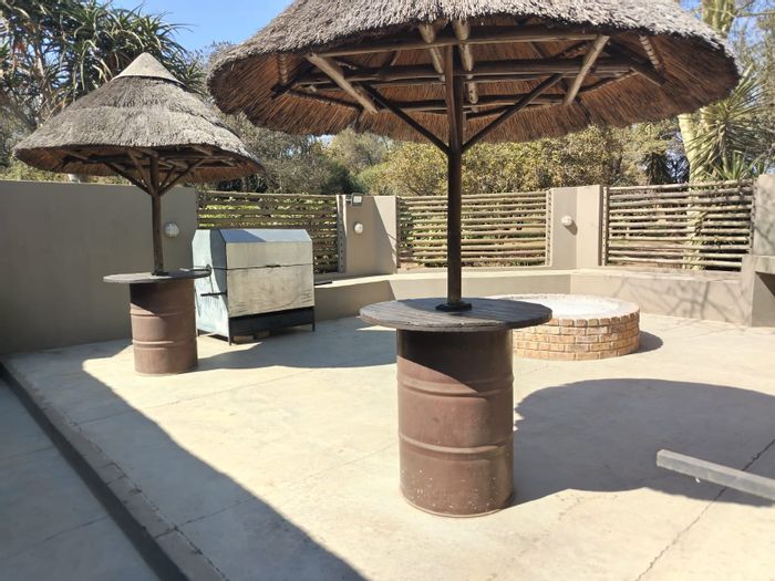 Private Bushveld retreat near Brits in the North West — enjoy fireside evenings at the entertainment boma and swimming pool; three wooden homes with six bedrooms, five bathrooms.