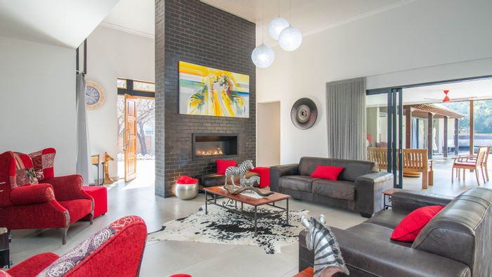 Entertainer's dream in Coves Estate with panoramic Magaliesberg and Hartbeespoort Dam views, enclosed stack doors patio for year-round hosting and a modern open-plan kitchen; three bedrooms, three bathrooms.