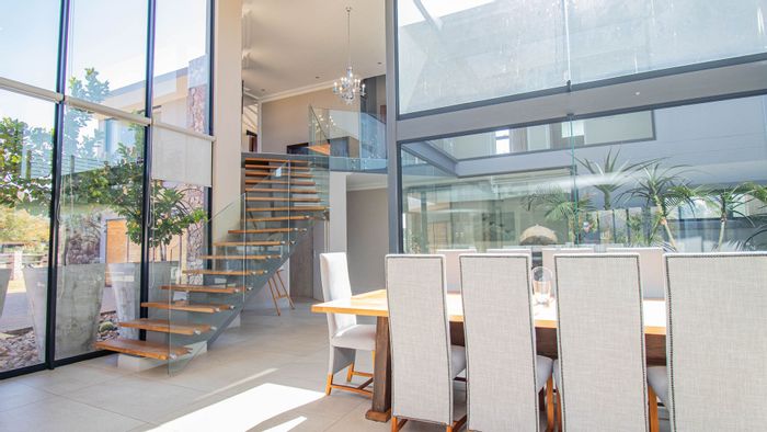 Resort-style family living at The Coves aviation estate, waterfront access and mountain views; grand open-plan home with entertainment braai area, pool and six bedrooms, five bathrooms.