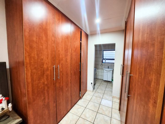 Secure, low-maintenance family living in Flamwood, Klerksdorp with a handy scullery and sunny living area; three bedrooms, two bathrooms and single garage.