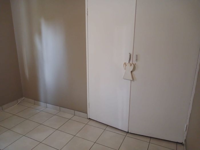 2-bedroom apartment in Flamwood, Klerksdorp with bathroom, kitchen, open living area, carport, and alarm system.
