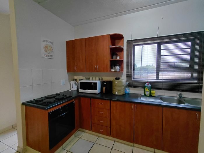 Family-friendly living near shops, schools and golf courses in Meiringspark, Klerksdorp. Sun-filled townhouse with separate lounge and dining plus generous kitchen cupboards; two bedrooms, one bathroom and covered parking.