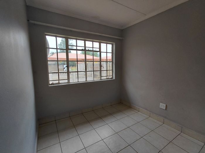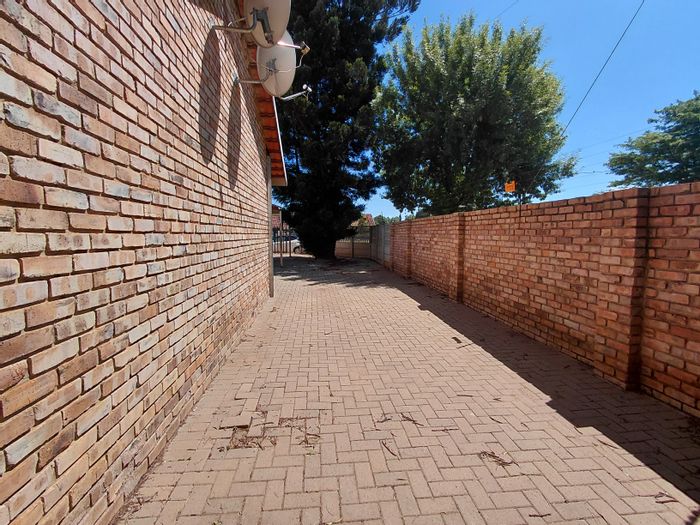 Enjoy relaxed Klerksdorp living near Matlosana Mall with easy shopping and dining access; ground-floor flat with private paved courtyard, communal pool, two bedrooms, one bath, covered parking.