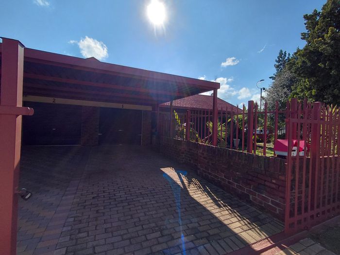Relaxed family living in Klerksdorp's friendly small‑town setting with easy access to shops, schools and amenities; private porch overlooking green gardens. Two bedrooms, one bathroom, two covered parking.