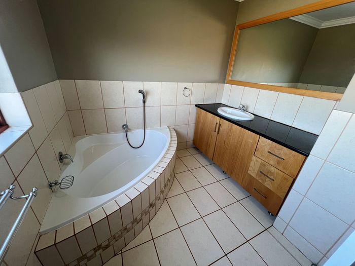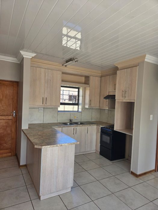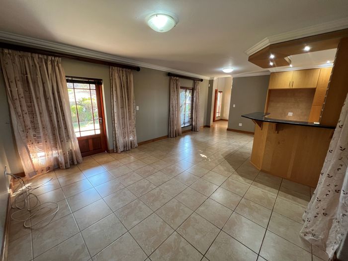 Relax in leafy Wilkoppies with a private garden and open-plan kitchen/lounge leading outdoors. One-bedroom, one-bath flat with lockup garage and carport—ideal low-maintenance living.