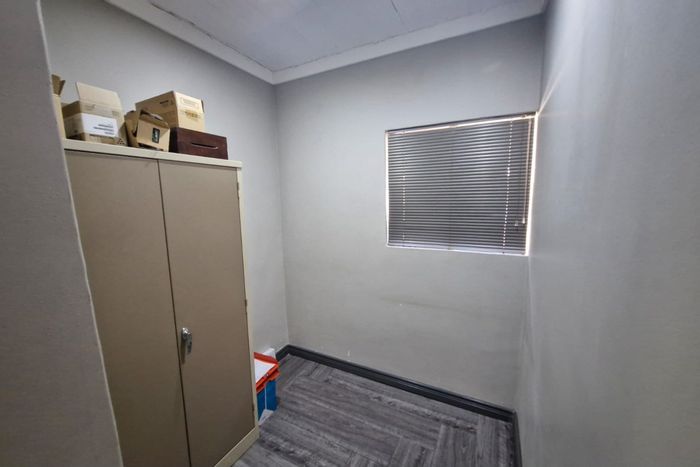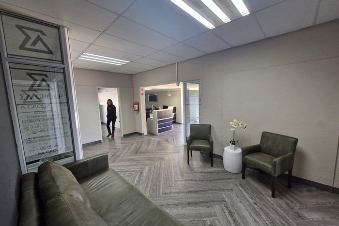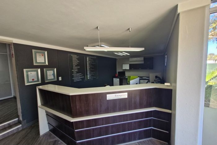 Well-located, secure modern shared office complex offering professional reception, air‑conditioned executive office and boardroom, ample parking, communal braai and solar power with 5.12kWh lithium battery.