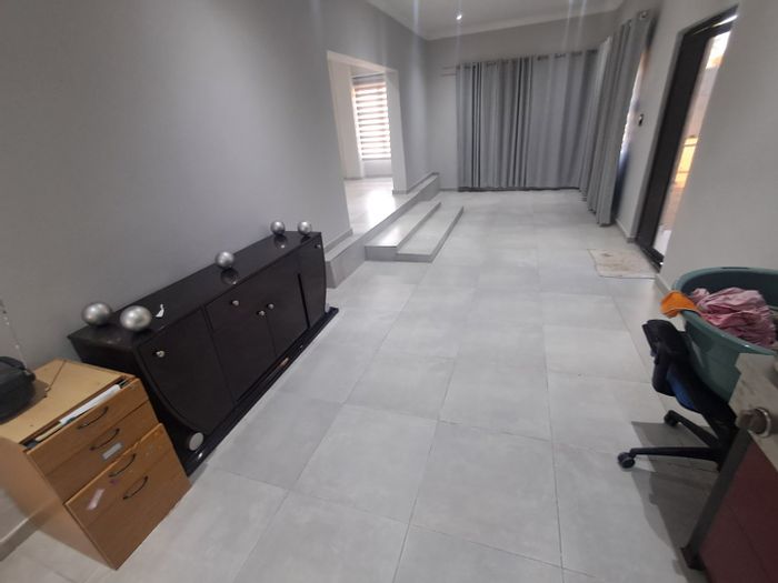 Modern, secure multi-tenant office on a 2,366m² site offering a professional reception, four air‑conditioned offices, kitchen, inverter backup, abundant parking and communal braai.