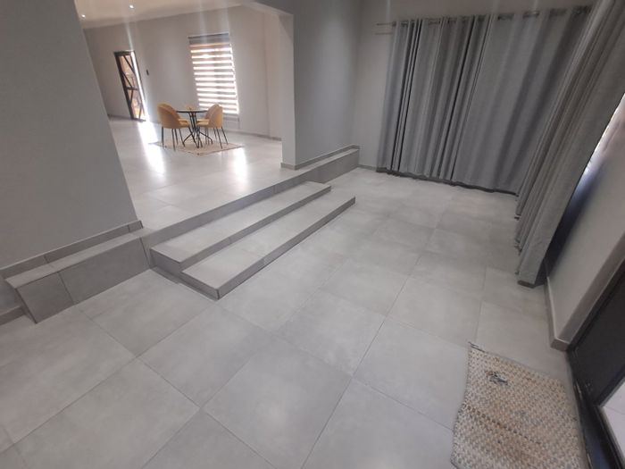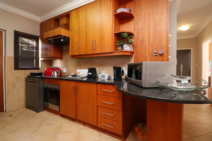 Effortless family living in a peaceful, family-friendly neighbourhood with expansive entertaining spaces, pool-side patio and borehole — five bedrooms, three bathrooms and a double garage.