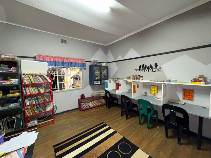 Community-focused property in Bodorp near schools and transport, perfect for a preschool, tutoring centre or offices; five classrooms with built-in desks, play gyms, fitted kitchen and large carport.