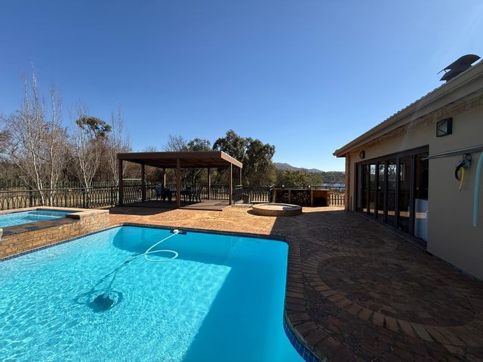 5-bedroom, 6-bathroom home on 4.56 hectares with private jetty, pool, and agricultural features in Buffelspoort Valley.