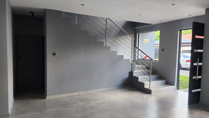 Three bedrooms, two bathrooms, 154 m² double-story unit with two garages in Rustenburg Town. No transfer costs.