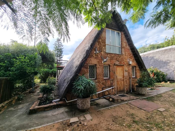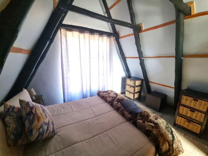 Relax in bushveld serenity at Utopia, Rustenburg — a charming thatched-roof retreat perfect for weekend escapes or Airbnb income; two-bedroom, one-bath cottage.