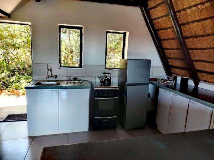 Relax in bushveld serenity at Utopia, Rustenburg — a charming thatched-roof retreat perfect for weekend escapes or Airbnb income; two-bedroom, one-bath cottage.