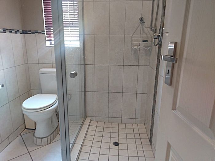 Pet-friendly townhouse in sought-after Waterval East, Rustenburg, with open-plan kitchen and lounge, built-in cupboards, secure complex living — three bedrooms, family bathroom and two covered parking.