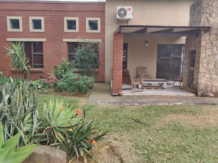 Secure Waterval East townhouse near shopping, top schools and main routes, with covered stoep overlooking a sparkling pool, air-conditioned lounge, 3 bedrooms, 2 bathrooms, ample parking.