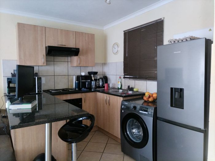 Community-centred apartment in sought-after Waterval East, Rustenburg — open-plan living with low-maintenance tile floors and landscaped communal garden; 2 beds, 1 bath, covered parking, minutes from schools and shopping.