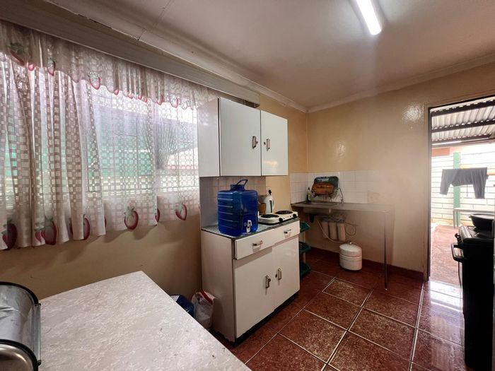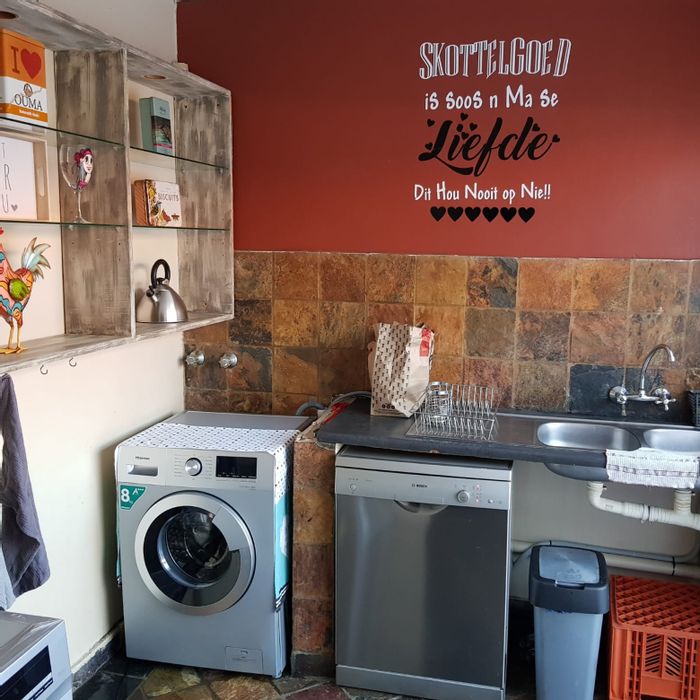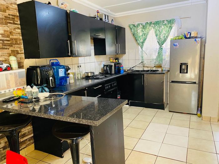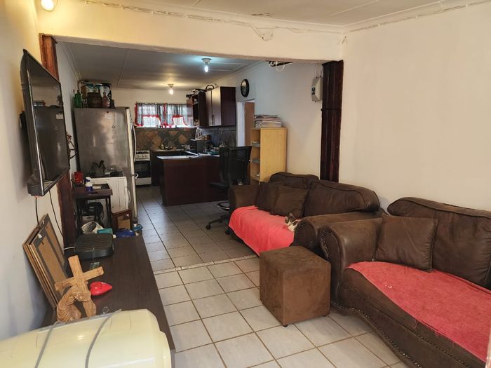 Move-in ready family home on a corner stand in a quiet neighbourhood, offering a wrap-around garden, modern kitchen with sleek cupboards, Italian-fitted bathroom, lock-up Wendy hut, three double bedrooms.