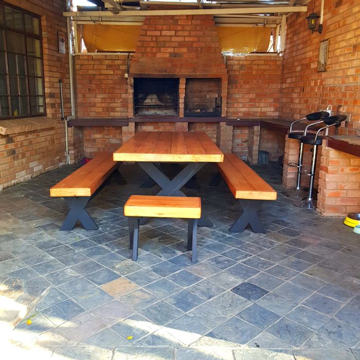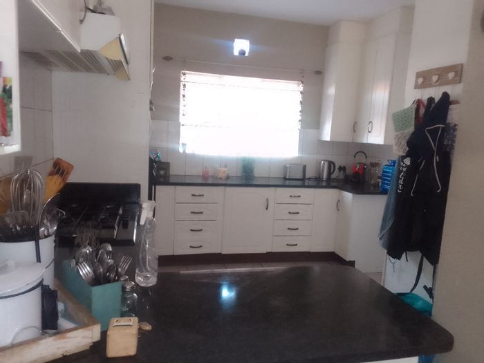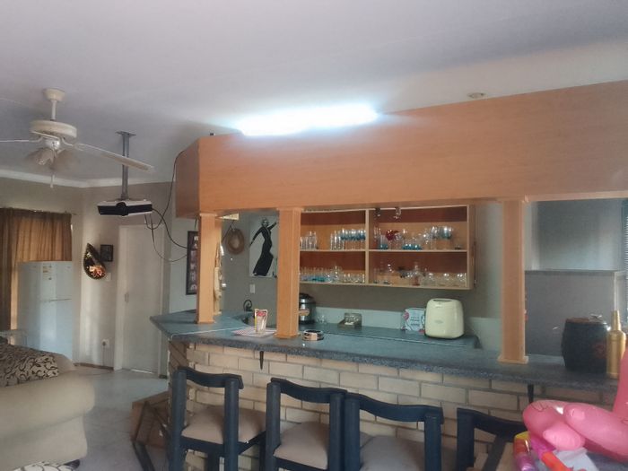 Relax in quiet Geelhout Park with a lush garden, lapa and pool — open-plan kitchen and lounge for effortless entertaining. Three bedrooms, two bathrooms, single garage, ample parking.